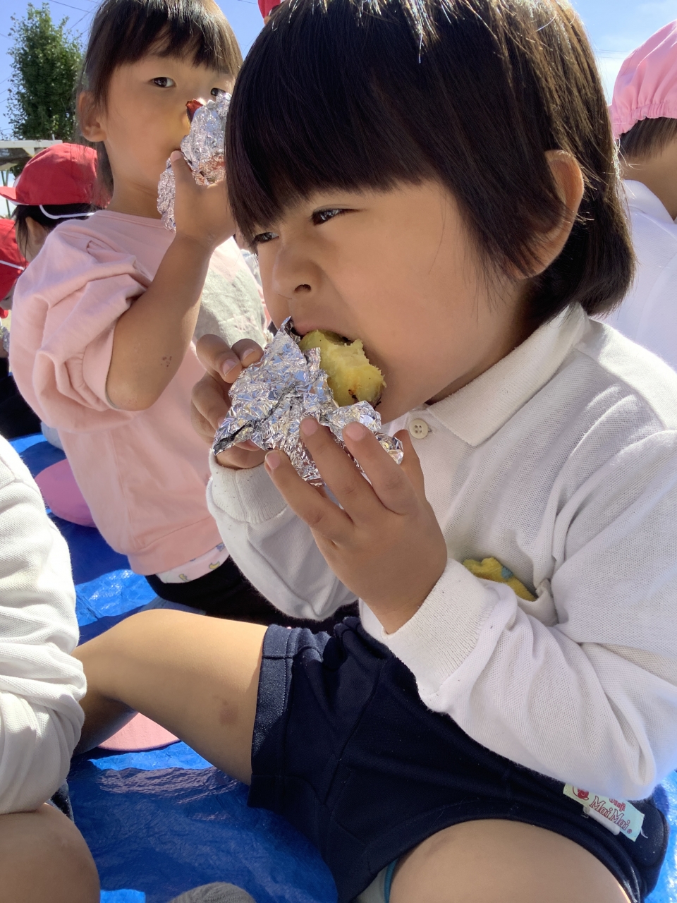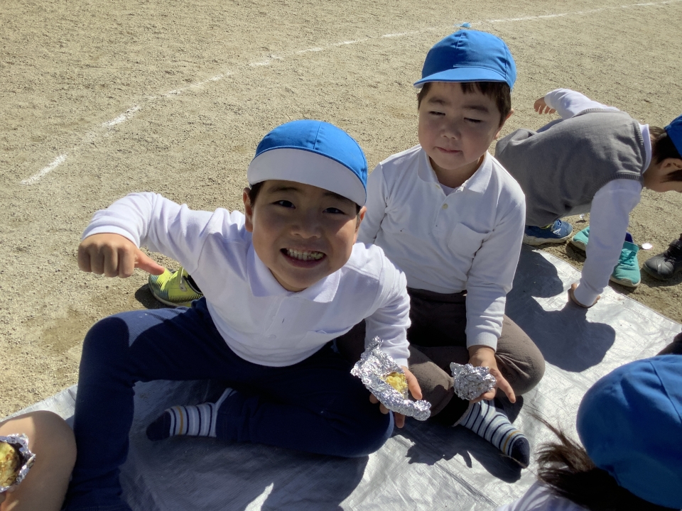 年長児が掘ったさつまいもを焼き芋にして食べました!!