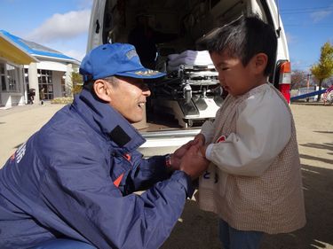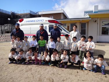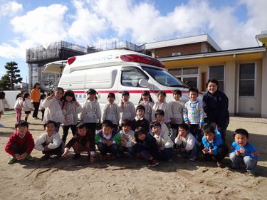 救急車の前でハイポーズ!!