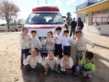 「大きくなったら、消防士さんになります!!」と握手をしてもらいました(*^_^*)