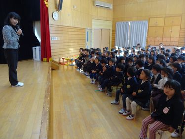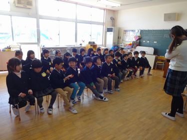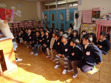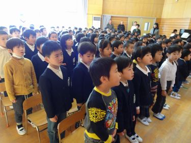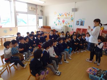 園長先生の話を静かに聞き、♪園歌・ゆき♪を大きな声で歌いました。