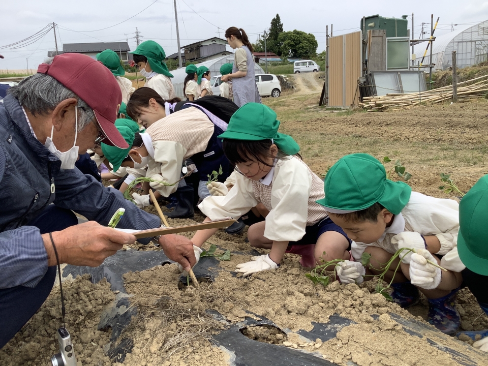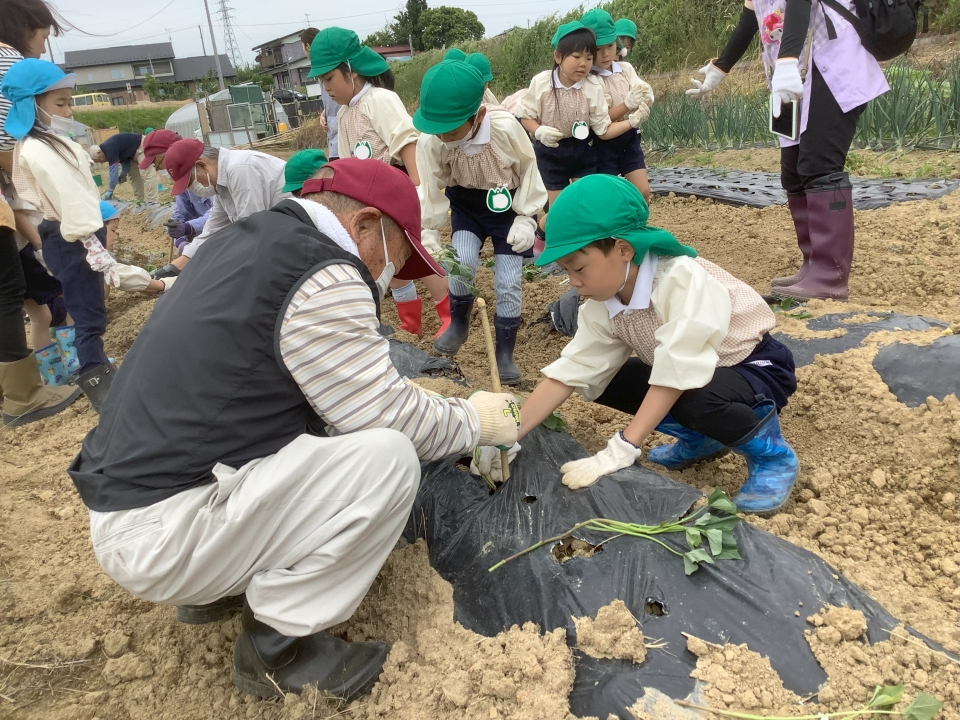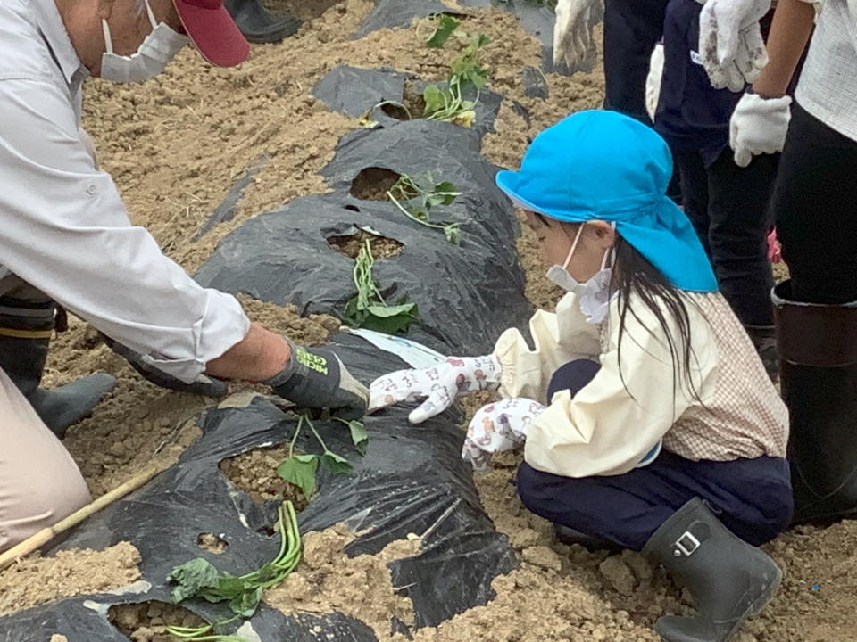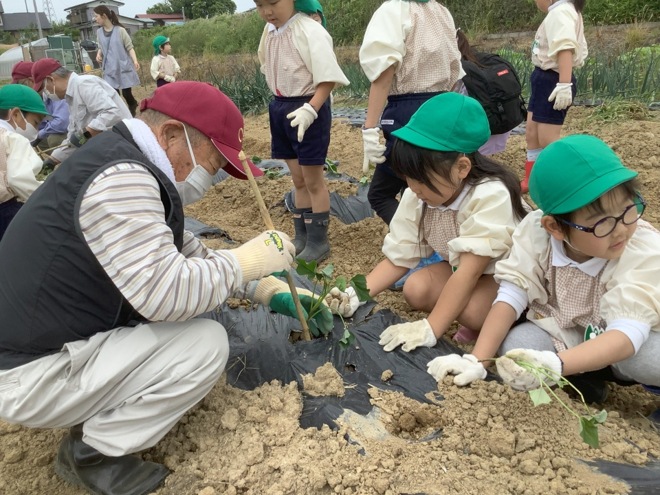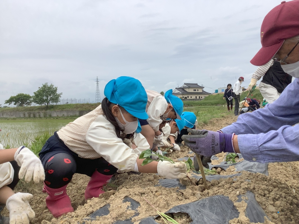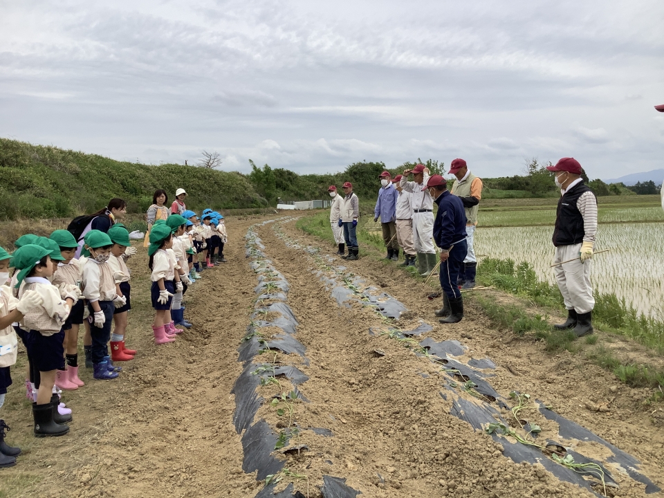 年長児が「喜久田ふるさとファーム」さんにお世話になり、サツマイモの苗を植えました。