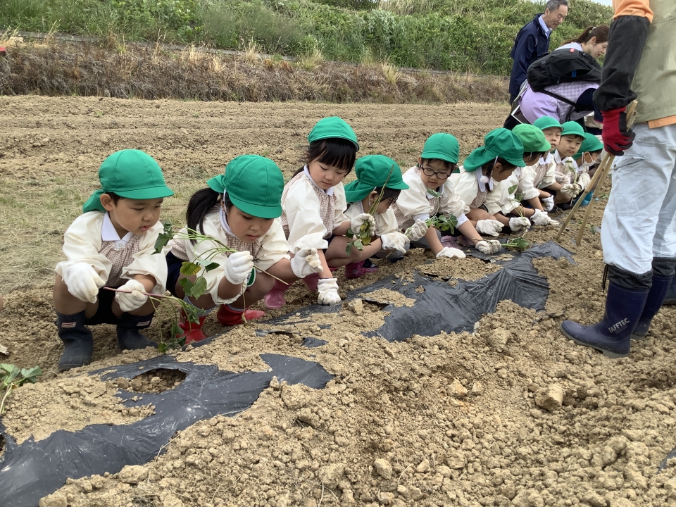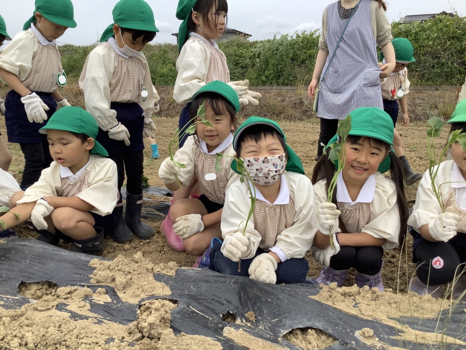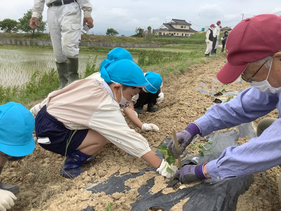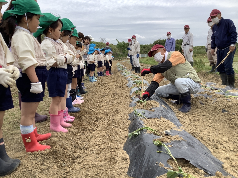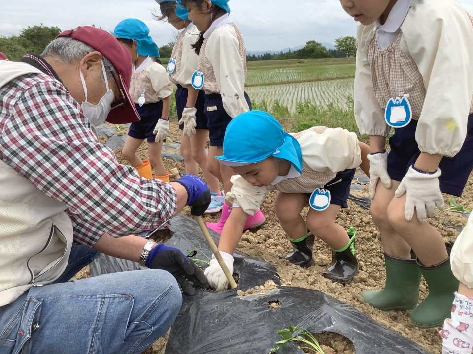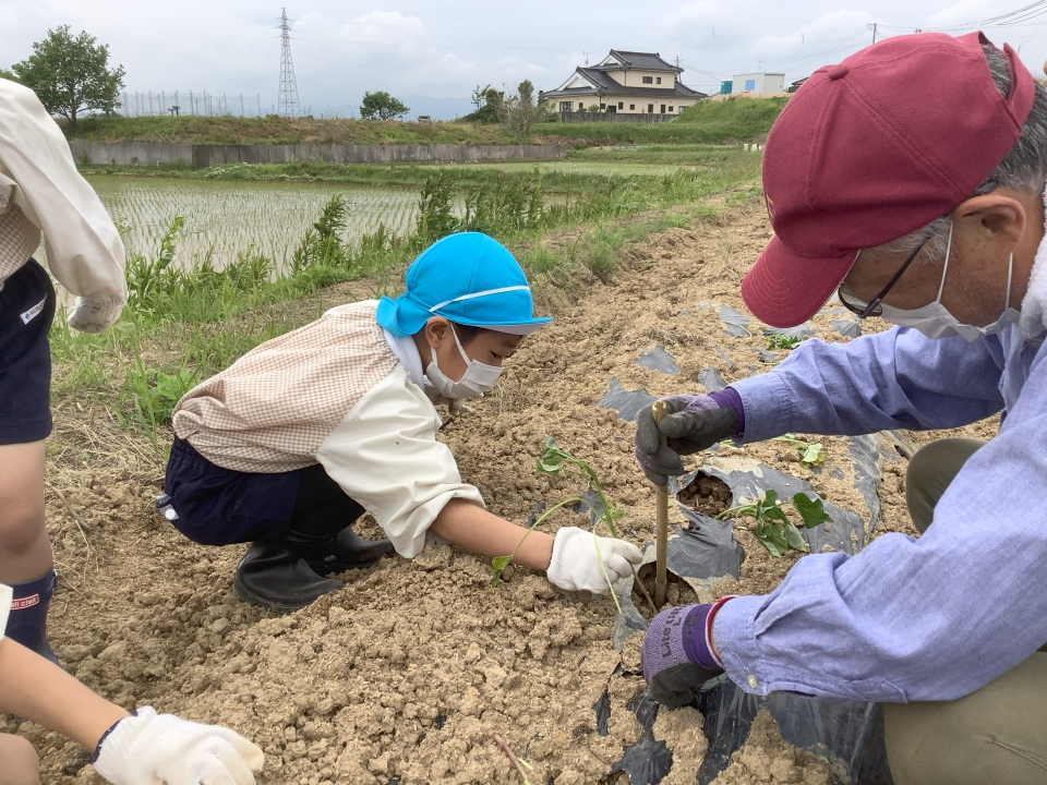 年長児が「喜久田ふるさとファーム」さんにお世話になり、サツマイモの苗を植えました。