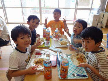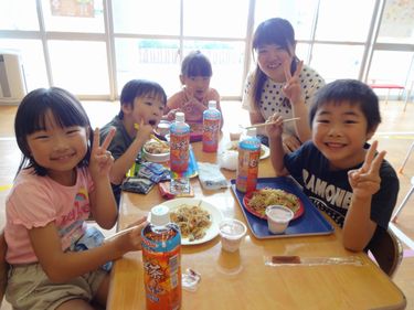 今日は久しぶりに集まって、みんなで焼きそばとフルーチェを作りました。