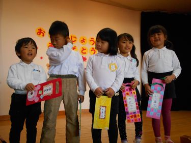 自分で作った千歳飴の袋を紹介しました(^O^)