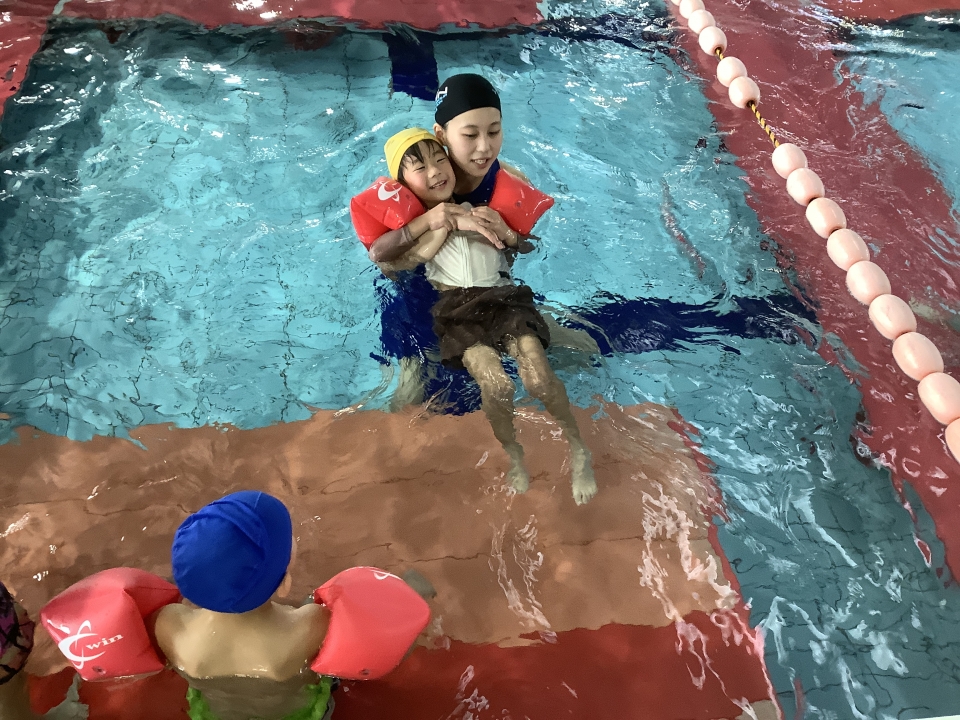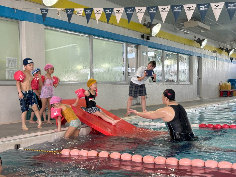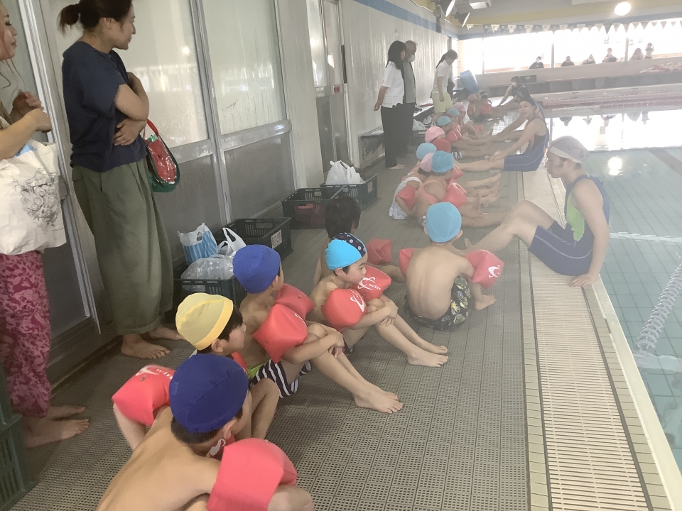 最初はスイミングスクールの先生のお話を聞きます(^○^)