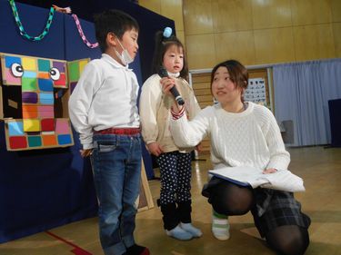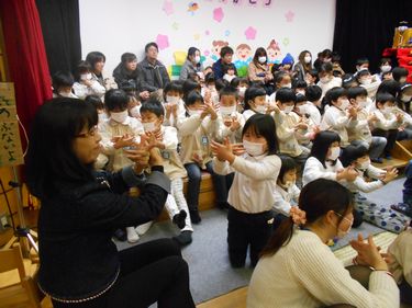 劇団「風の子」さんが楽しい手遊びやダンボールシアターなどをやってくれました\(^_^)/
