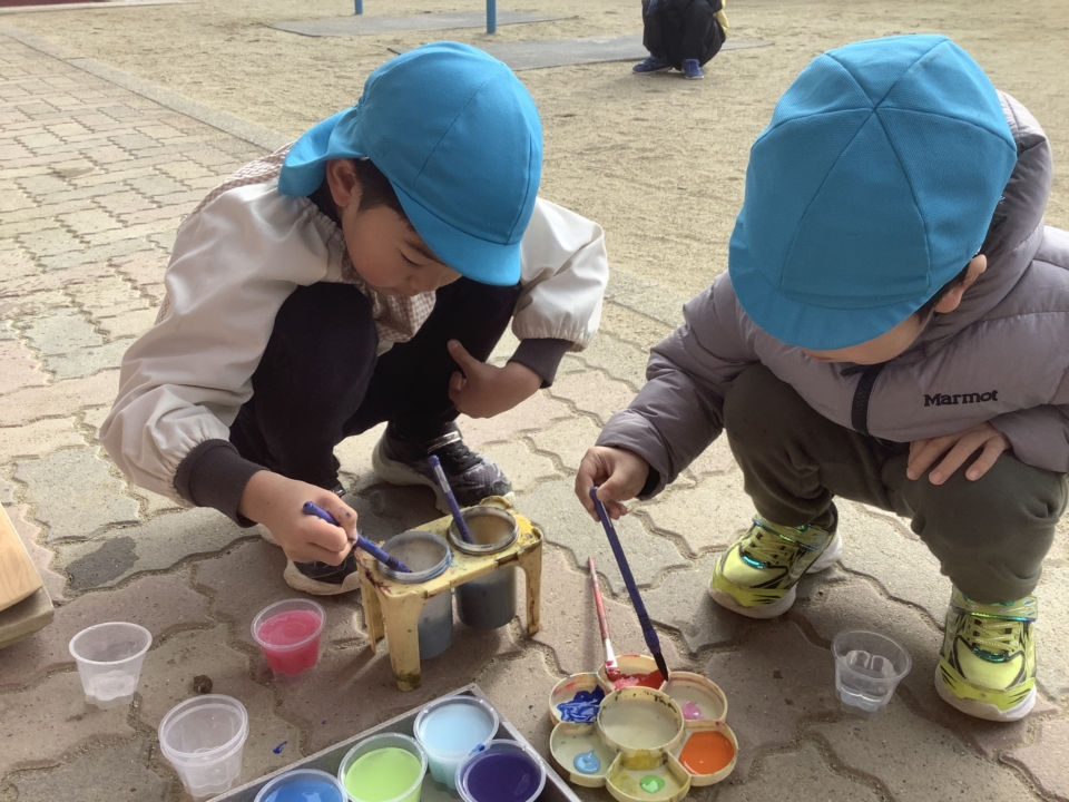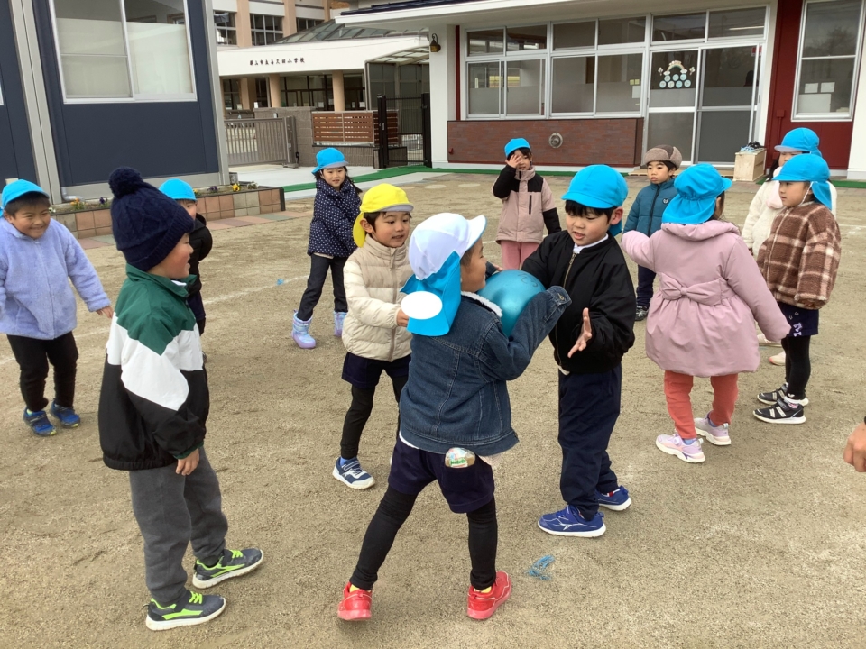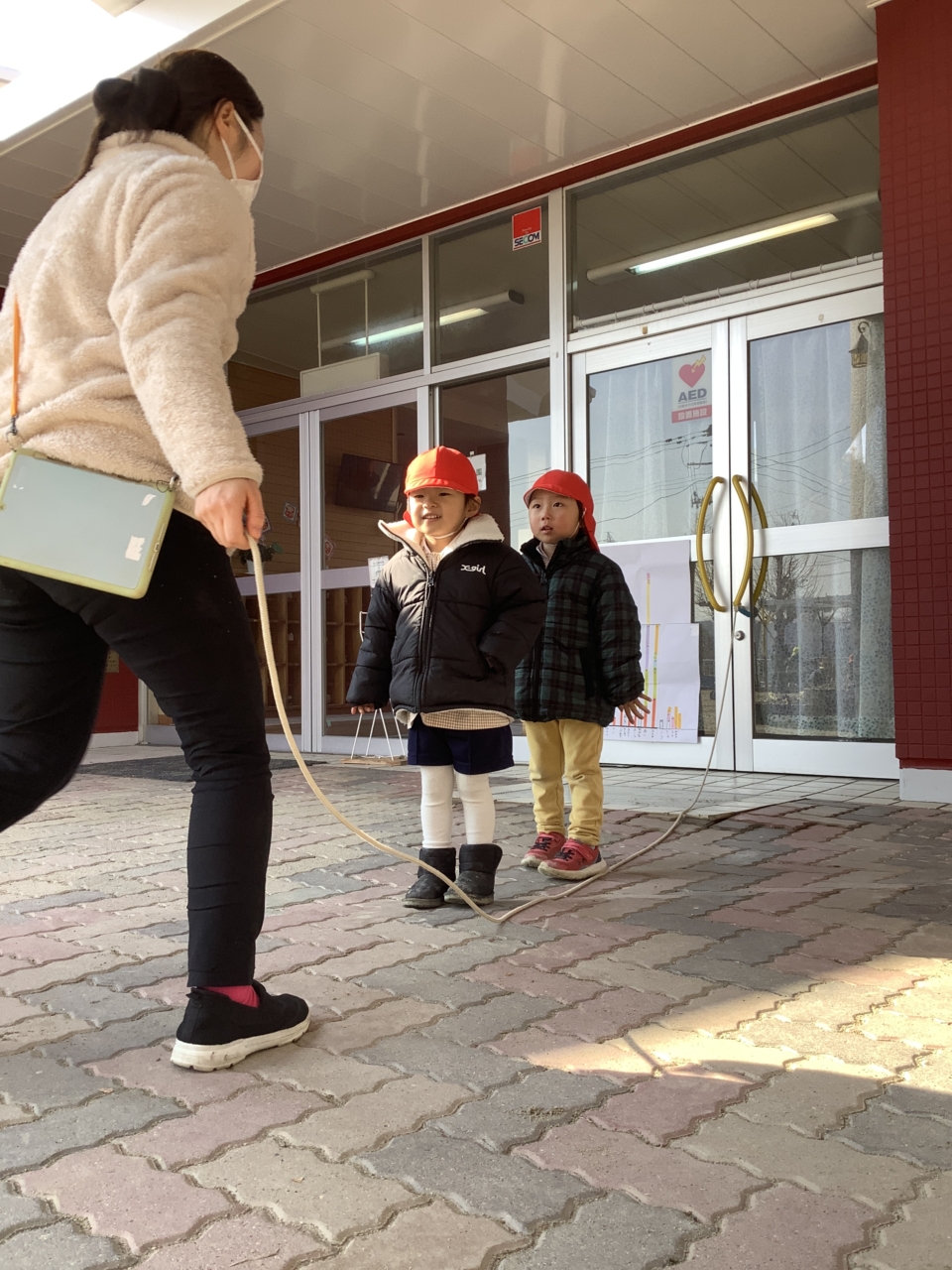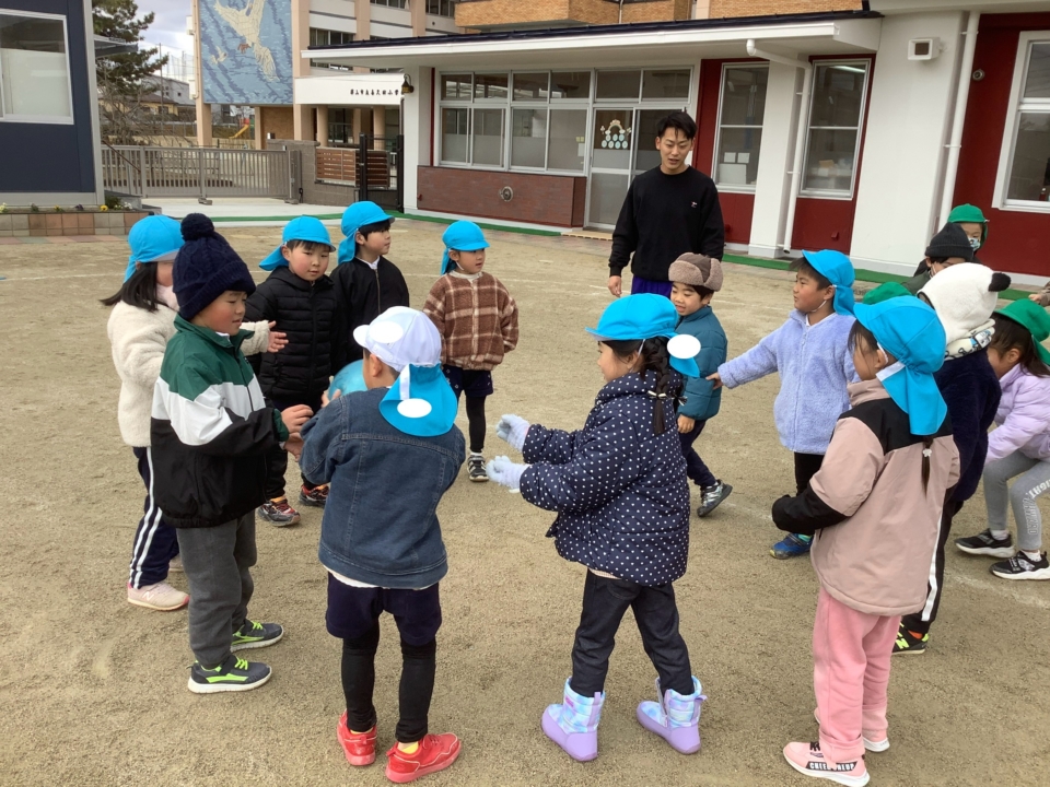 風が冷たい中でも、子どもたちは元気いっぱい戸外で遊んでいます!!