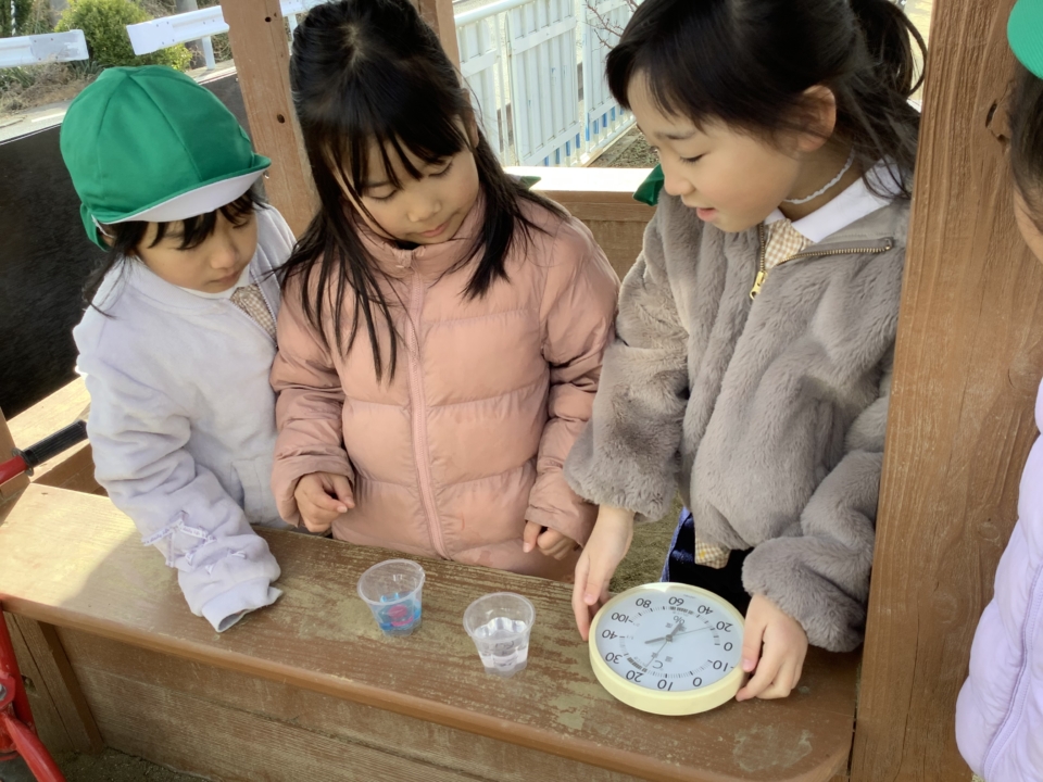 「何度になったら氷になるかな??」「色もつけてみようか?」