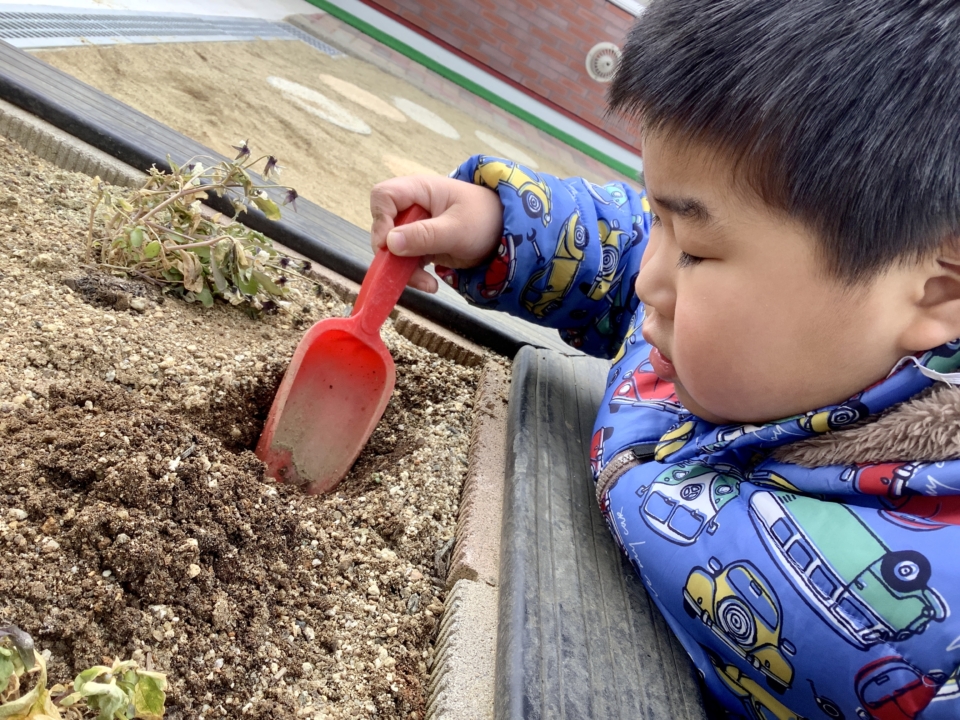 「寒くなったから、虫たちは土の中で寝ているのかな?」