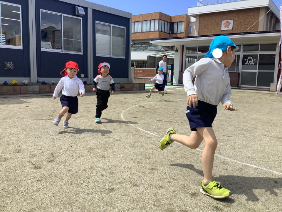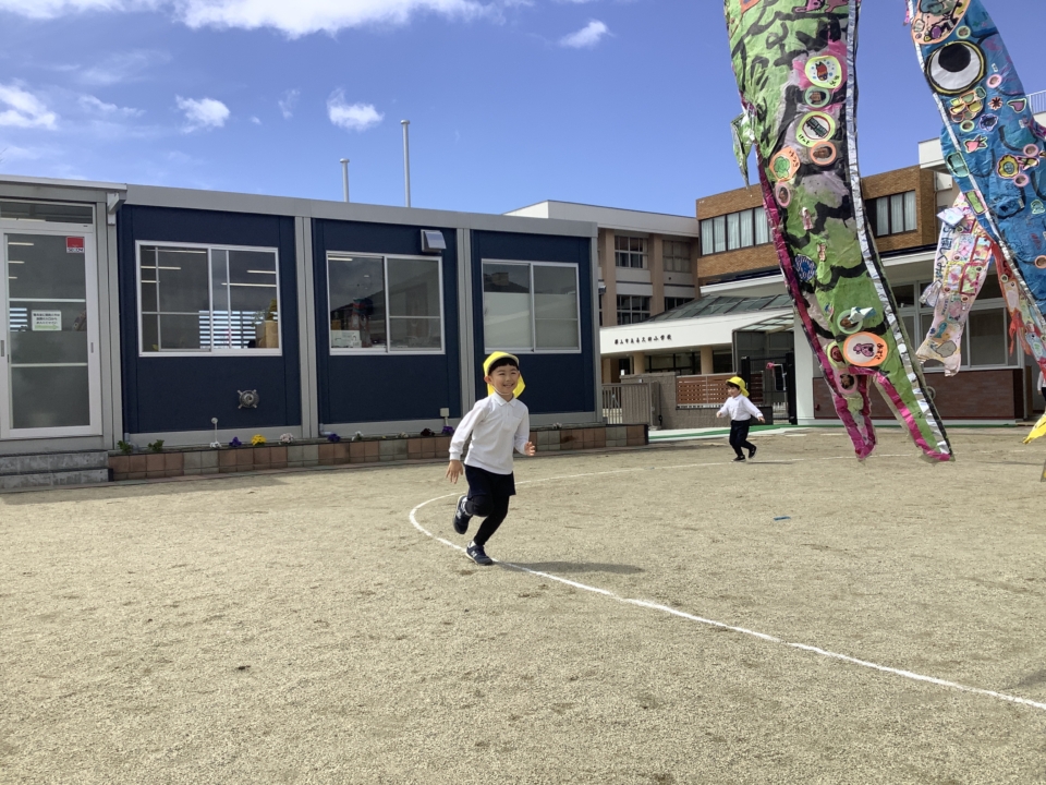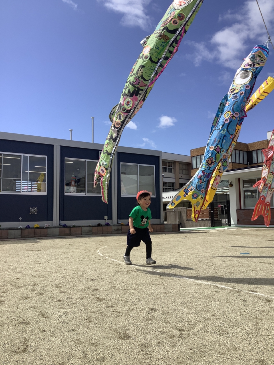 今年も手作りこいのぼりが園庭を元気いっぱい泳いでいます。