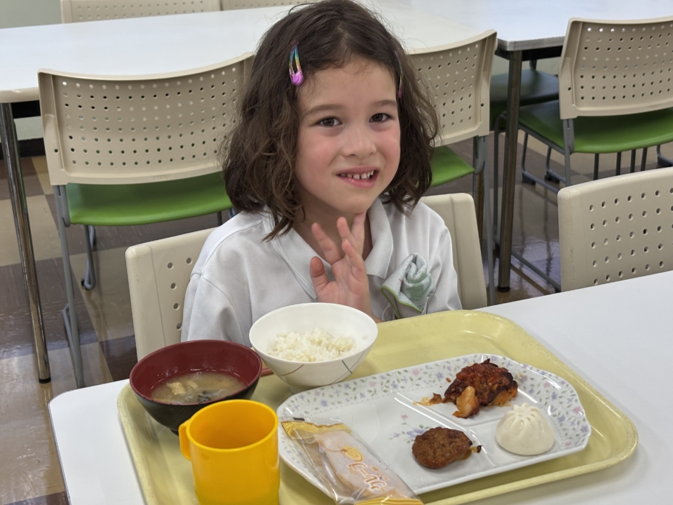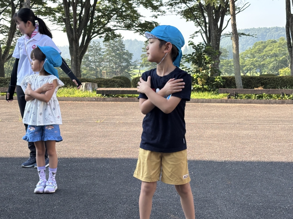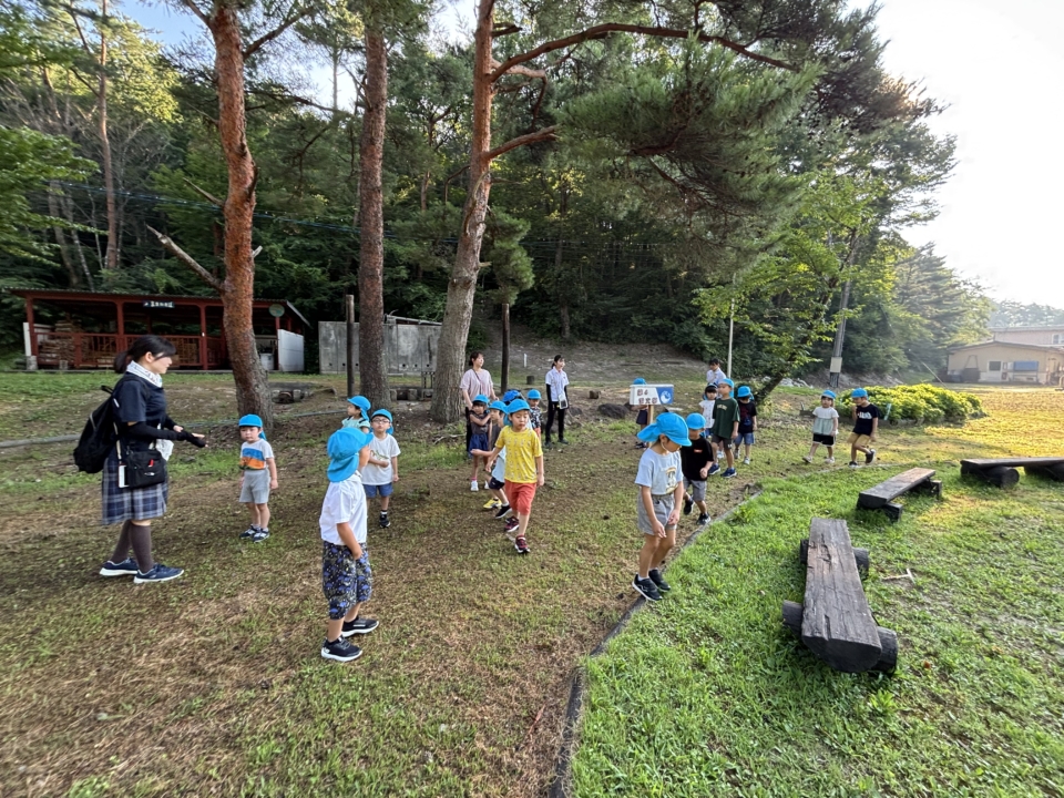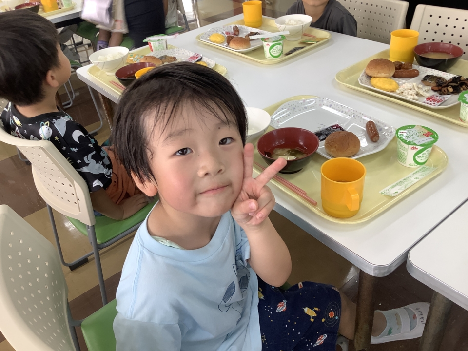 2日目・・・朝の体操!そして散歩をした後、朝食を食べて幼稚園に帰ってきました。
