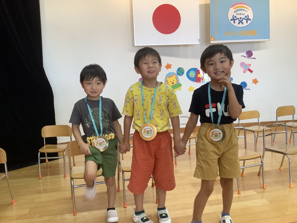 よく頑張りましたね!金メダルをもらって、ニコニコ笑顔です(*^-^*)