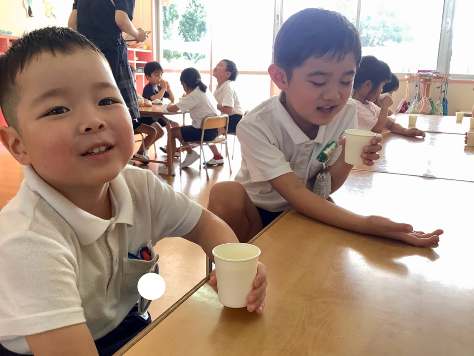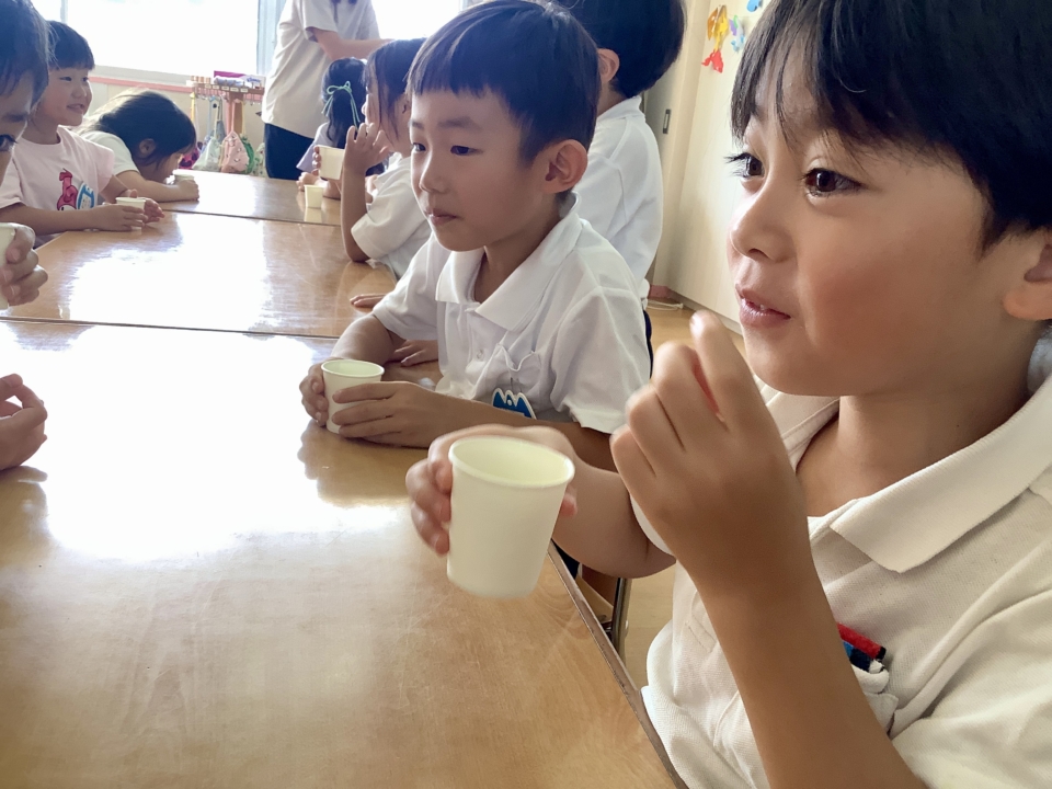 年長児…1学期にみんなで手作りした梅シロップジュースを飲んでみました✨