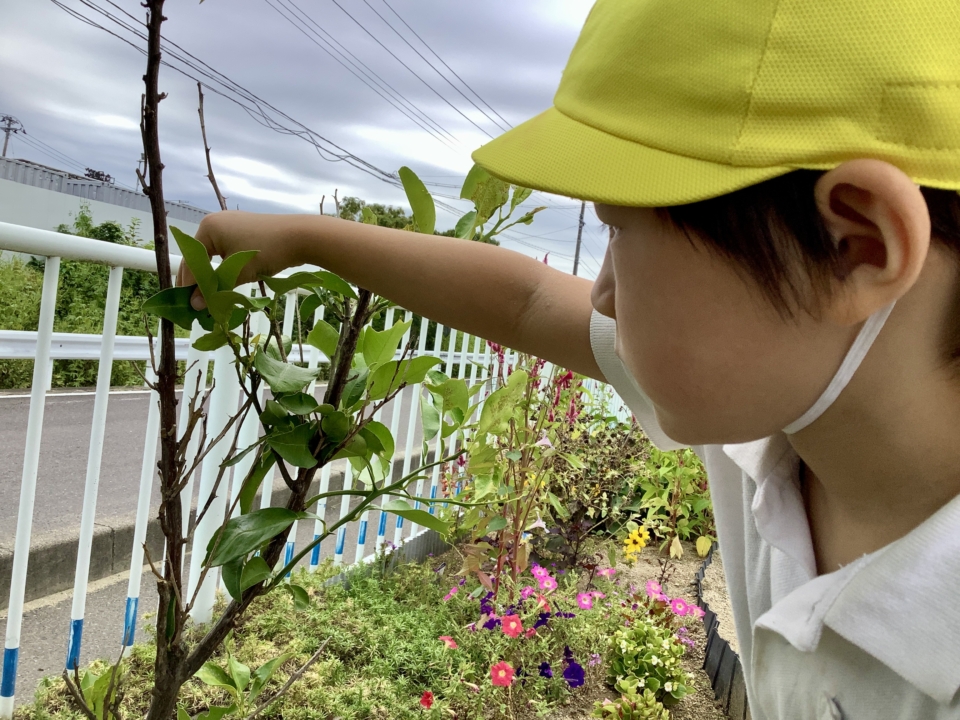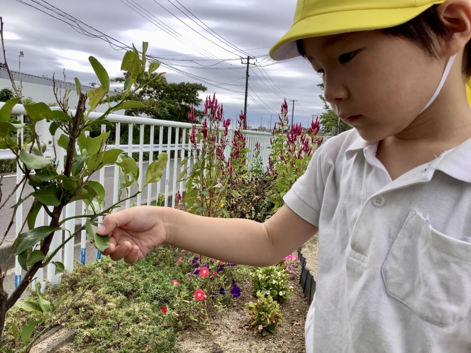 まだまだ暑い日が続いています…園庭ではナミアゲハの幼虫を観察中です!