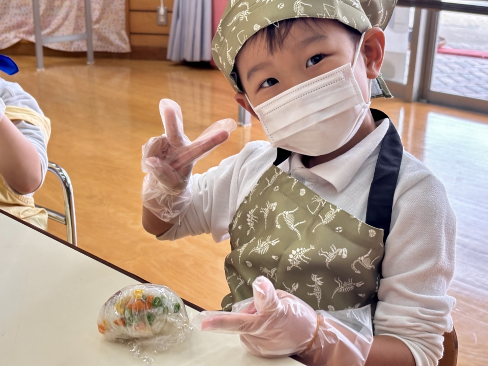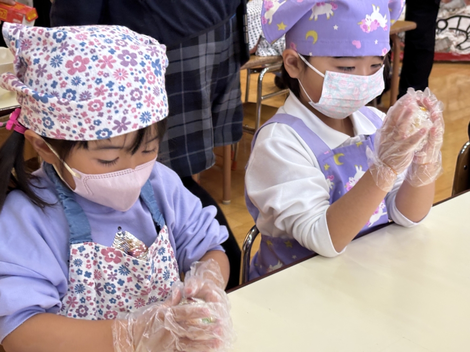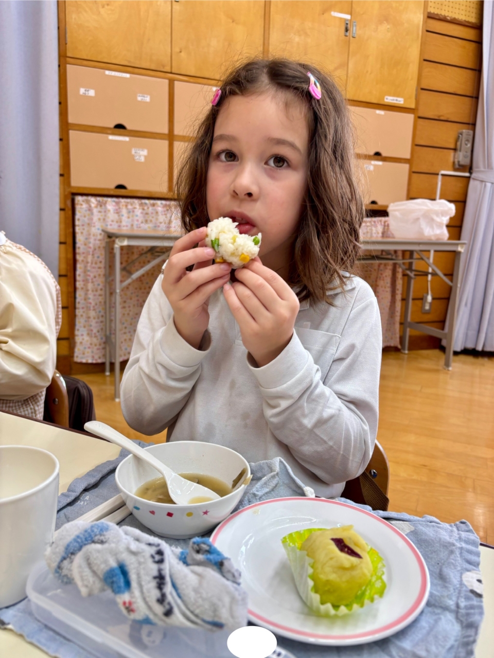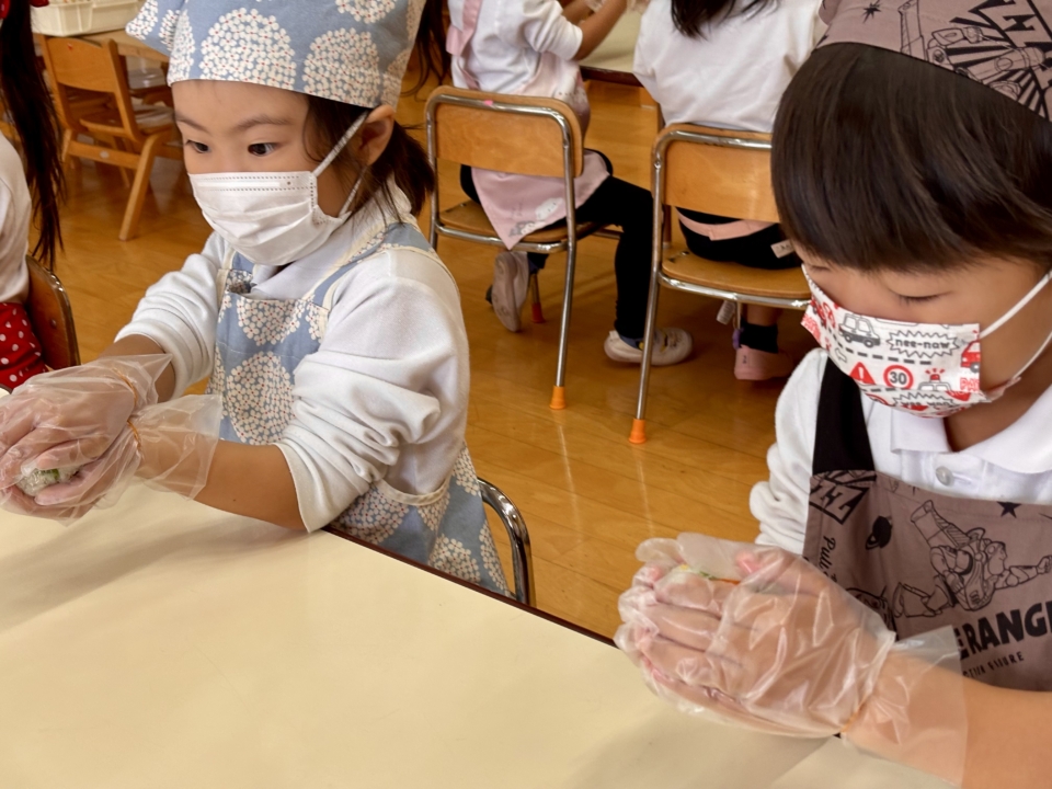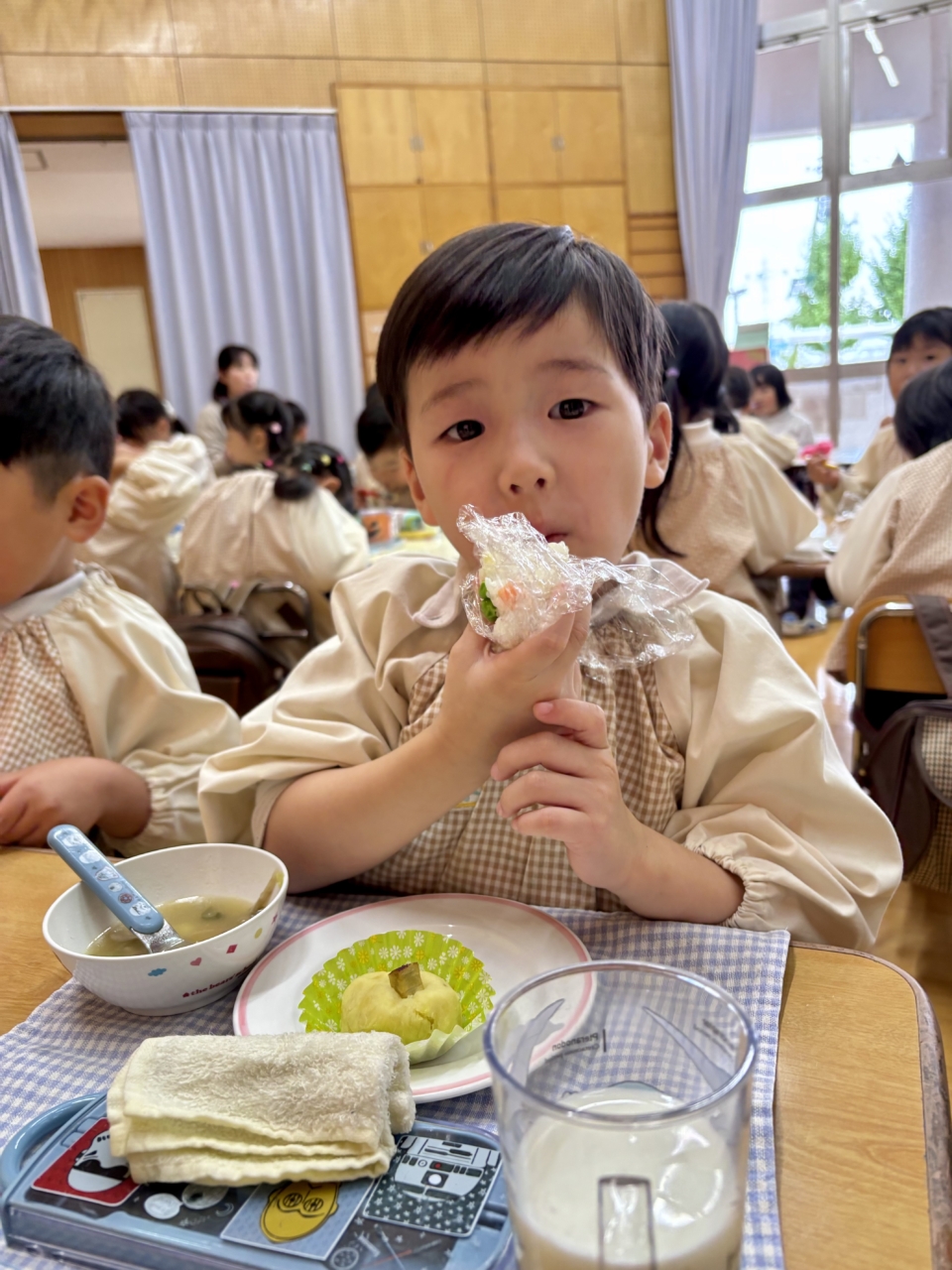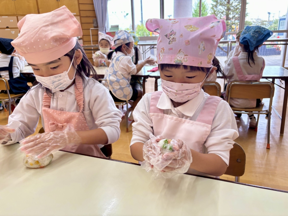 年中児は🍠さつまいもご飯をおにぎりにしていきます!!