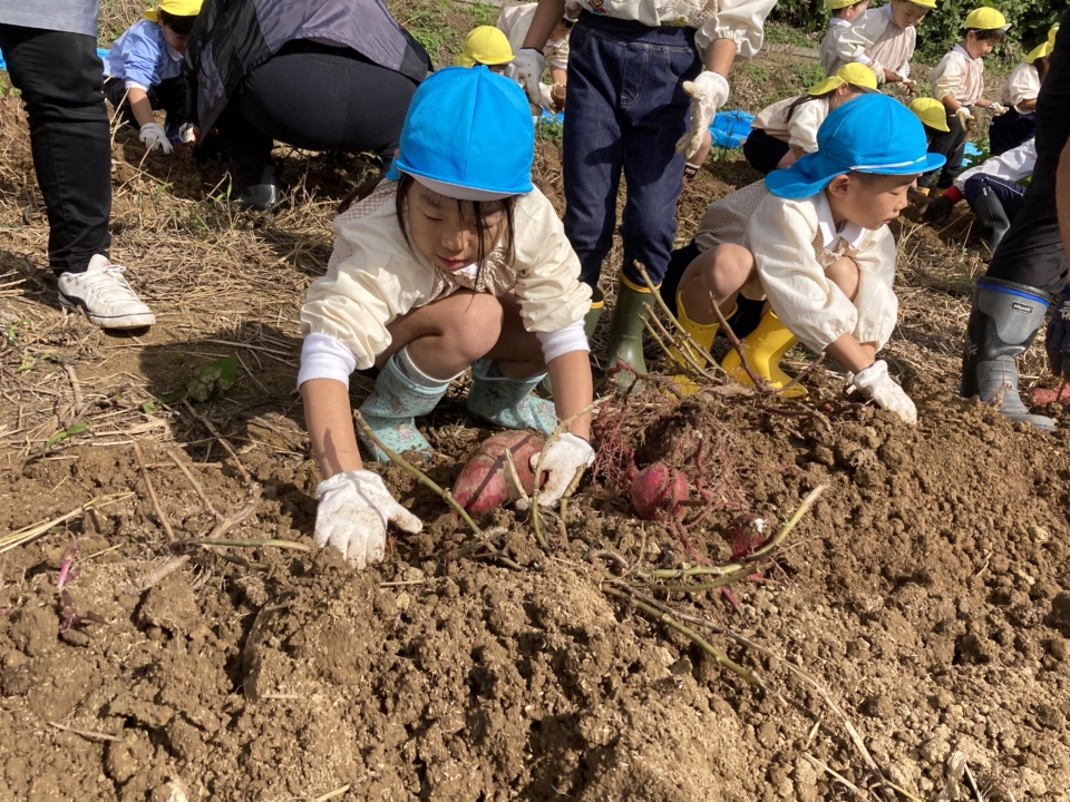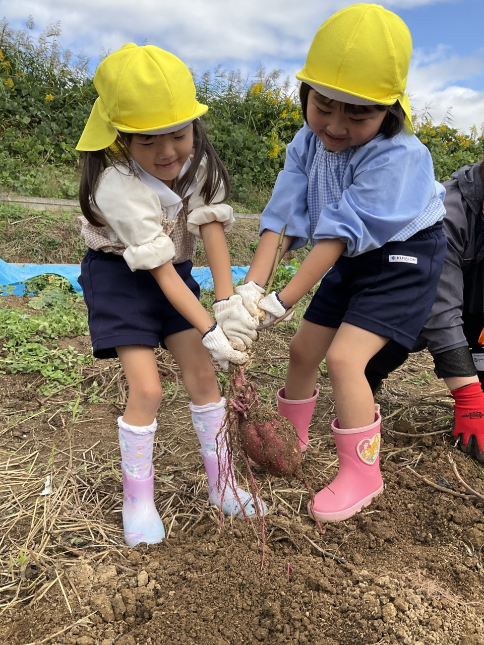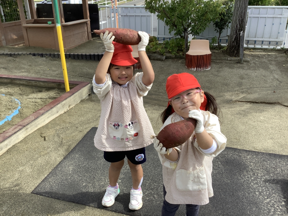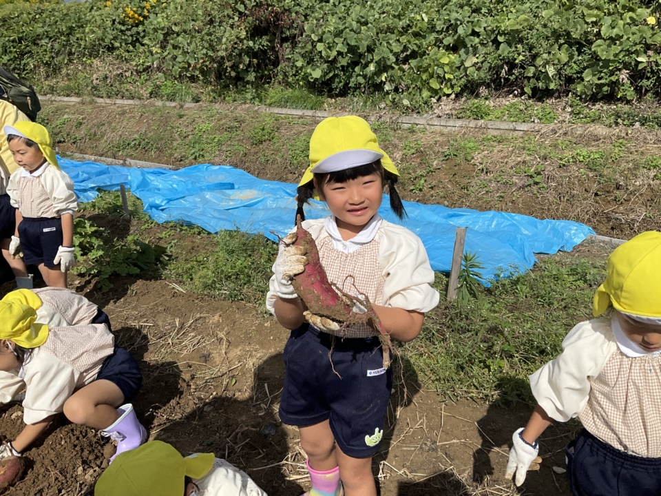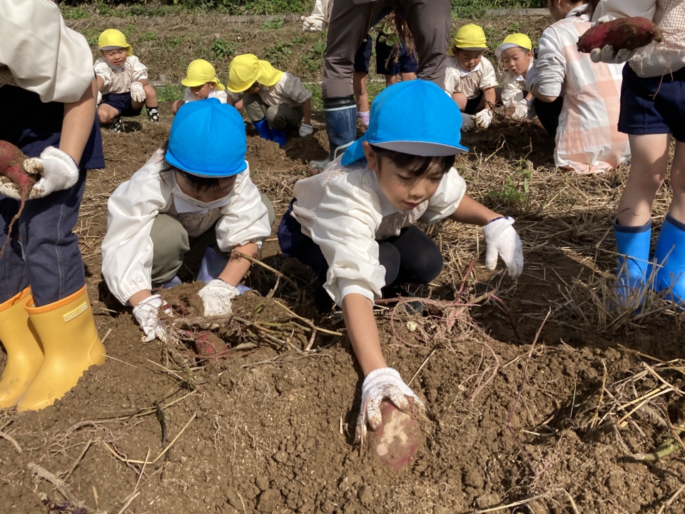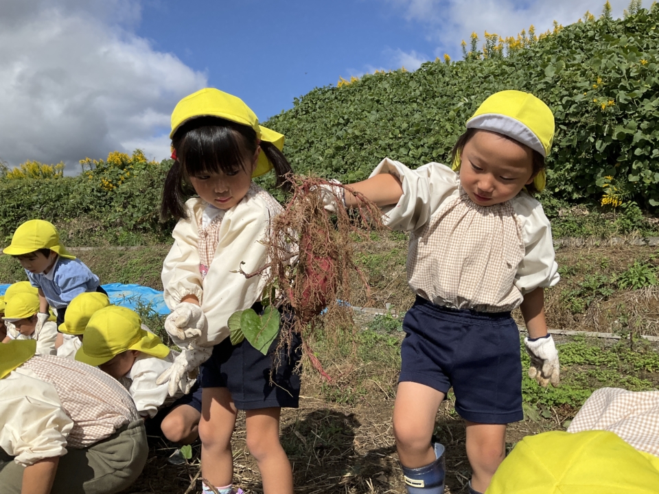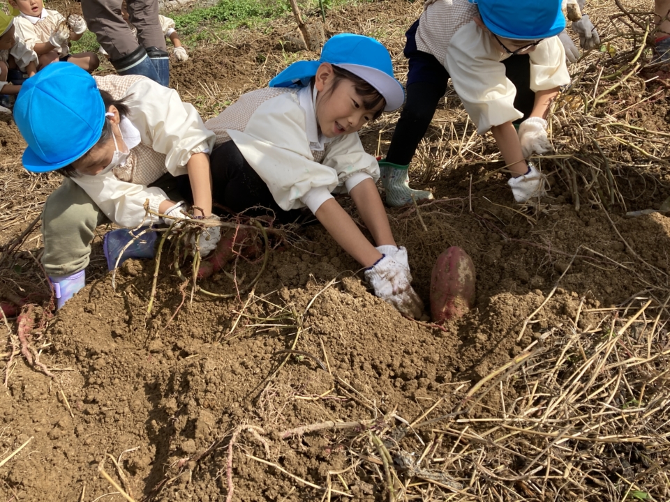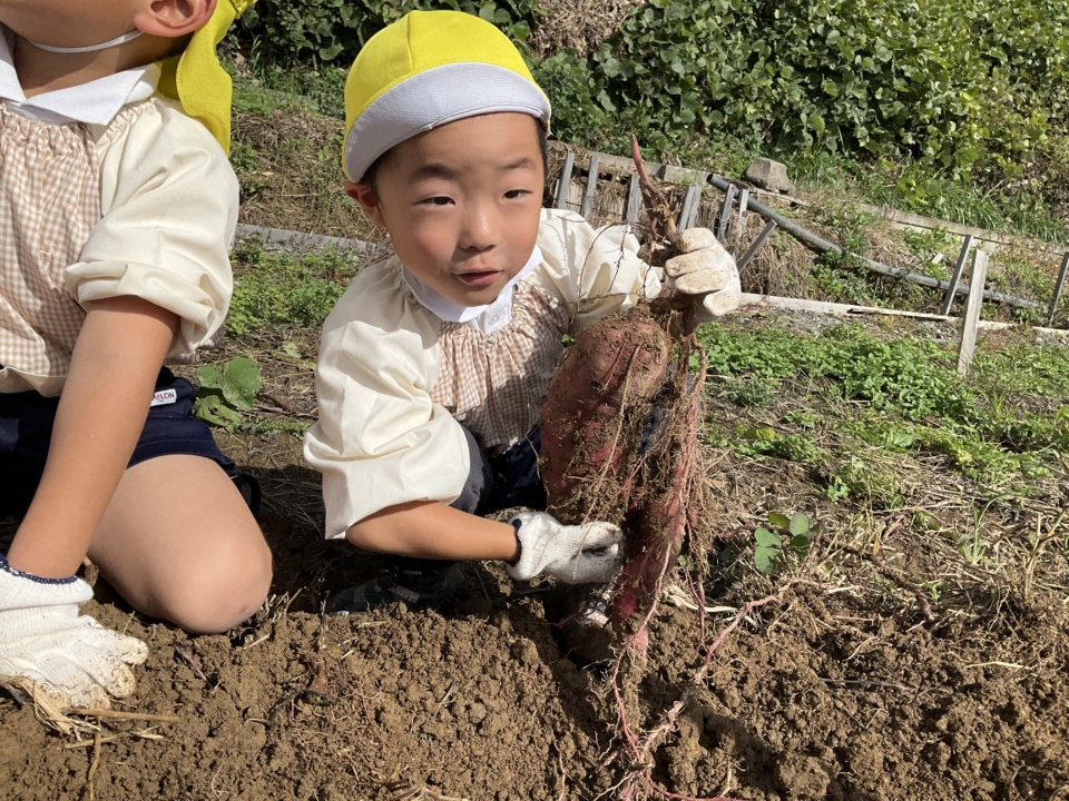 年少児は園庭のさつまいも畑にてさつまいも掘りを行いましたよ!