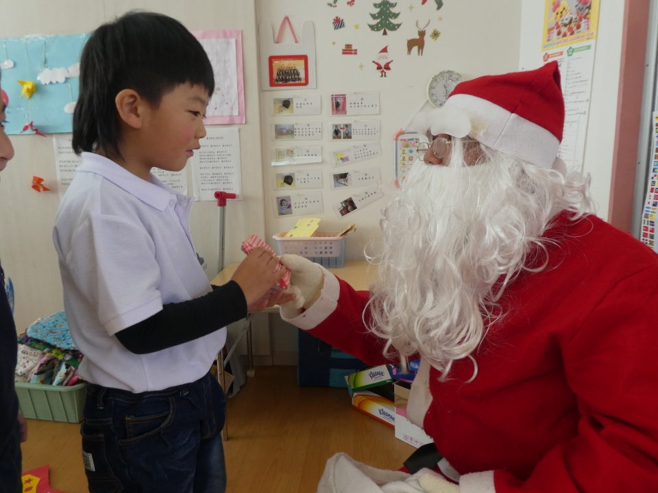 サンタさんがクラスにプレゼントを届けに来てくださいましたー!!