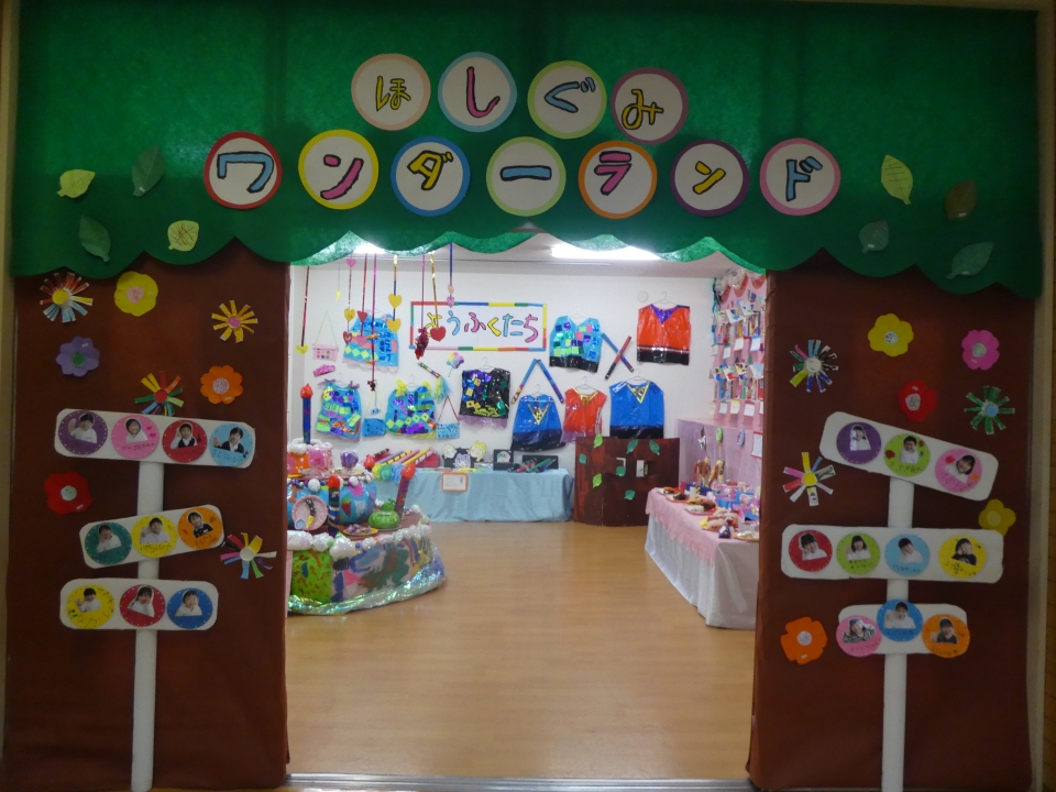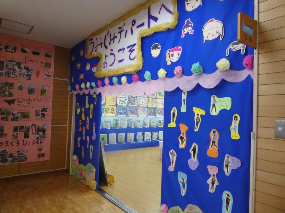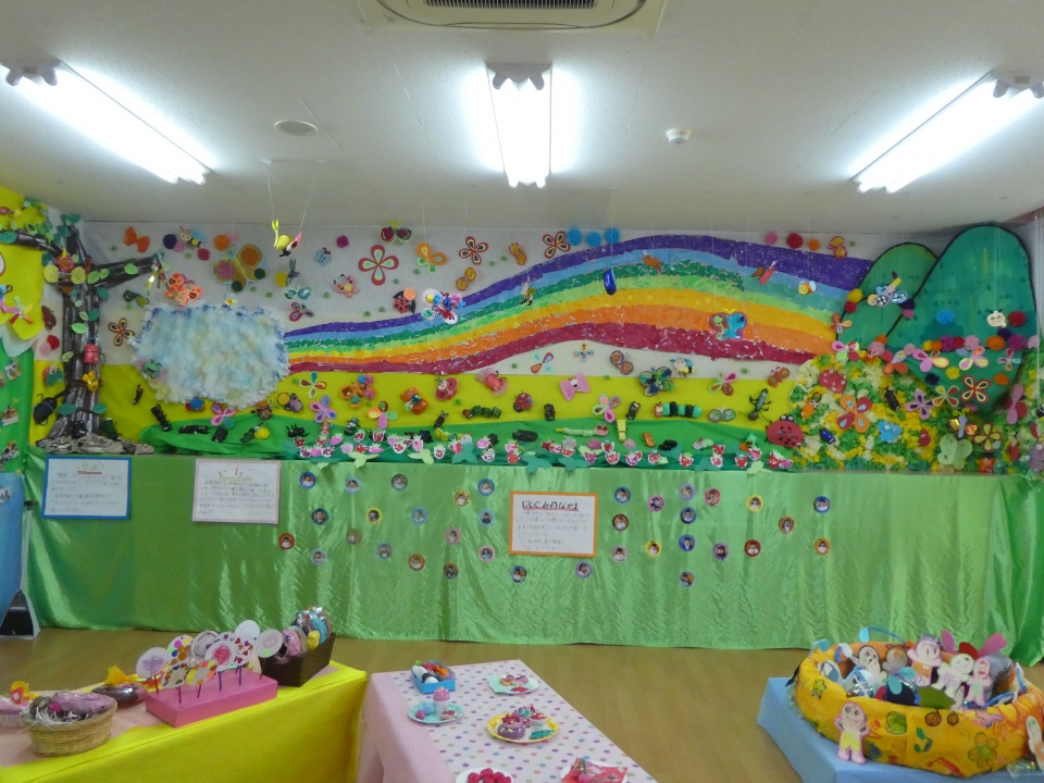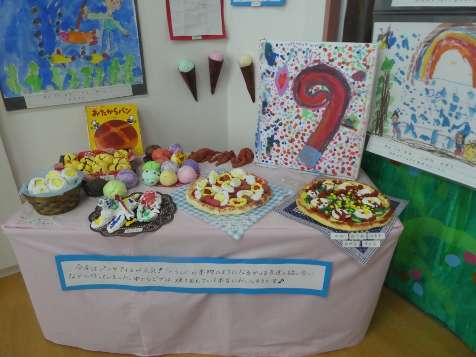 絵画は、年少・年中・年長の時に描いたものが展示されているので成長が見られますね。