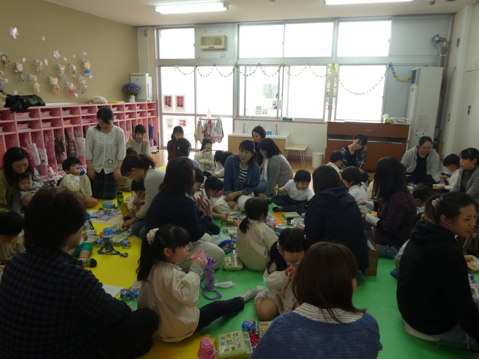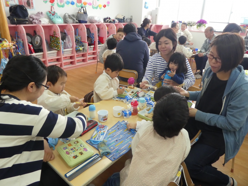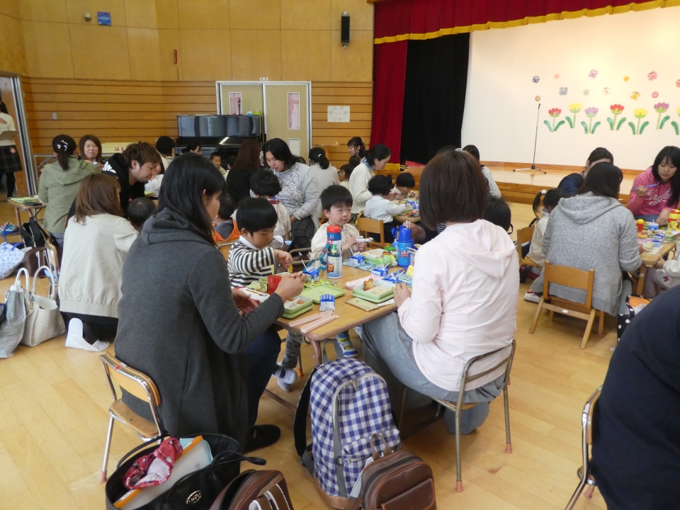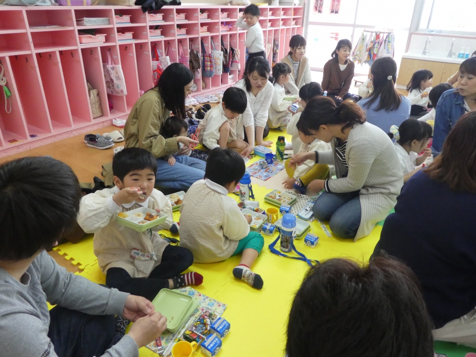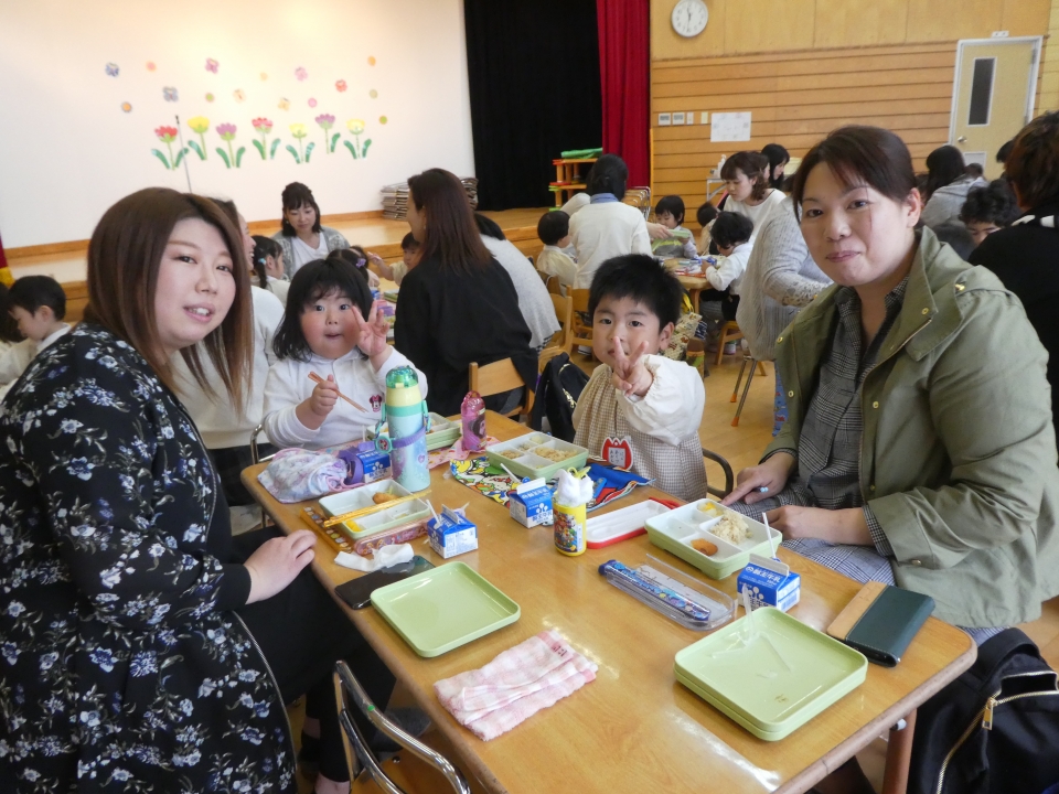 4月の保育参観はまだ園児が慣れていないため、お家の方と一緒に給食を食べました(*^-^*)