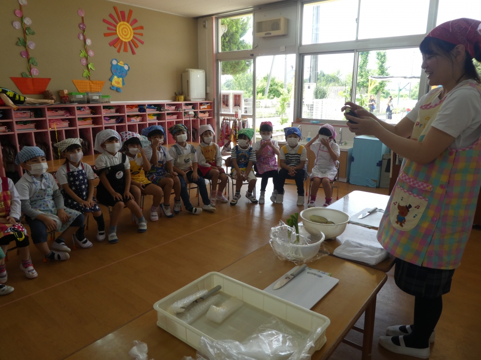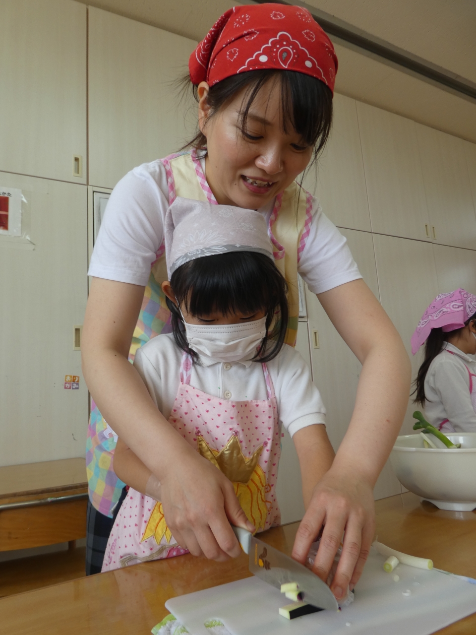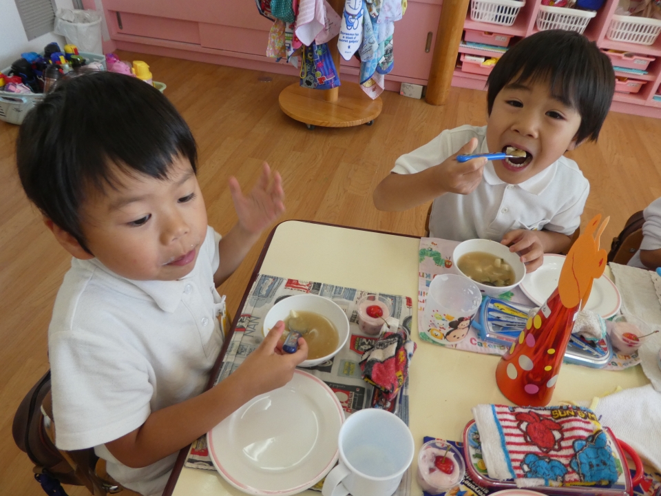 年長組は、育てていたナスが実ったのでお味噌汁を作りました♪