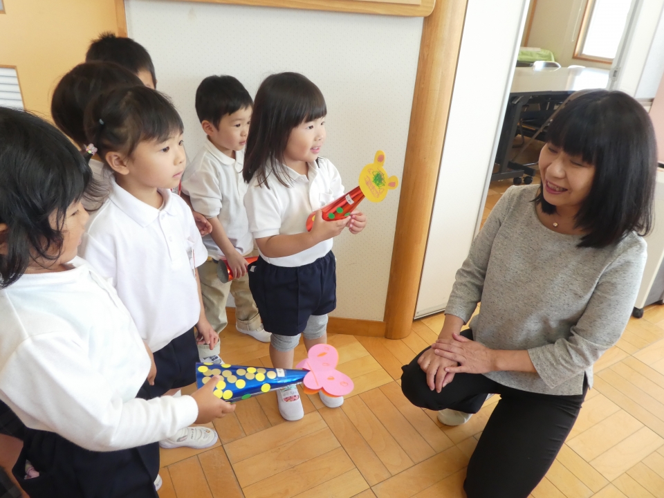 年少組は画用紙に動物の顔を描いてテーブルオブジェを作り、各クラスにお届けしました(^O^)/