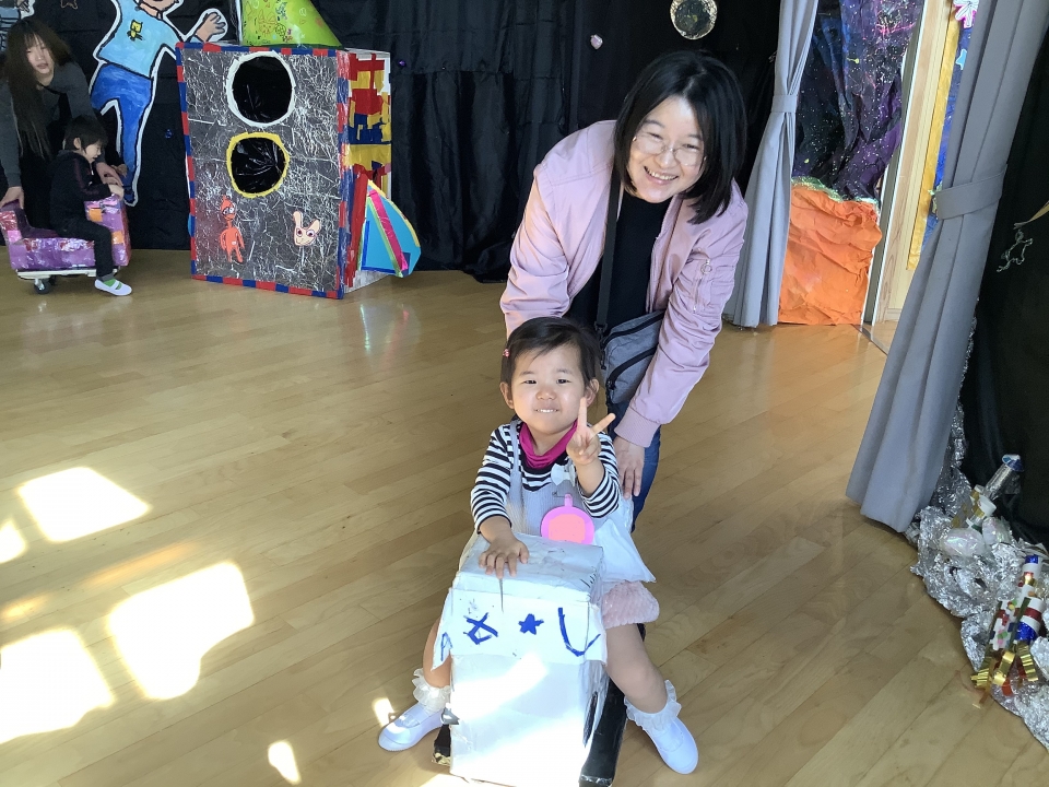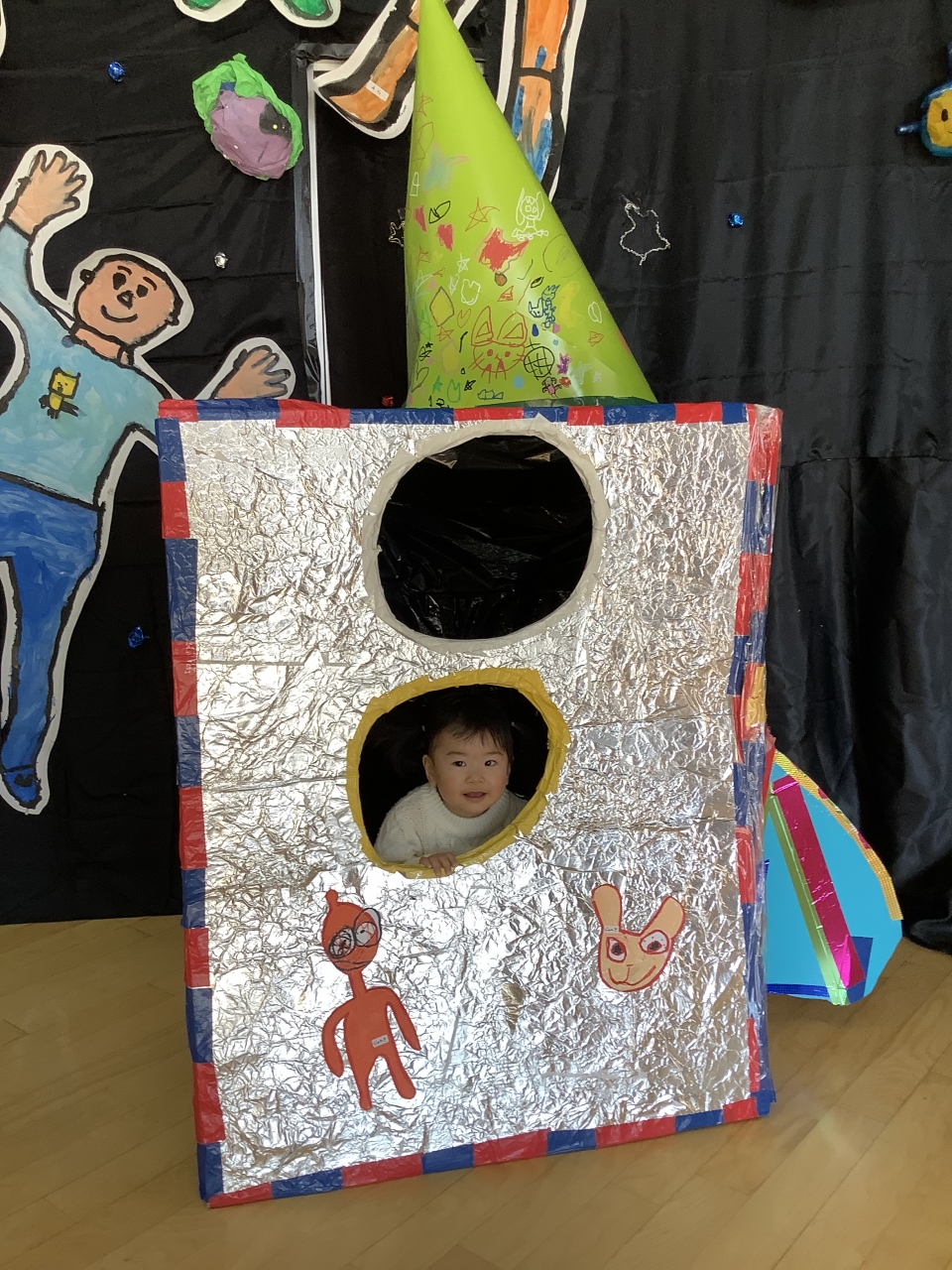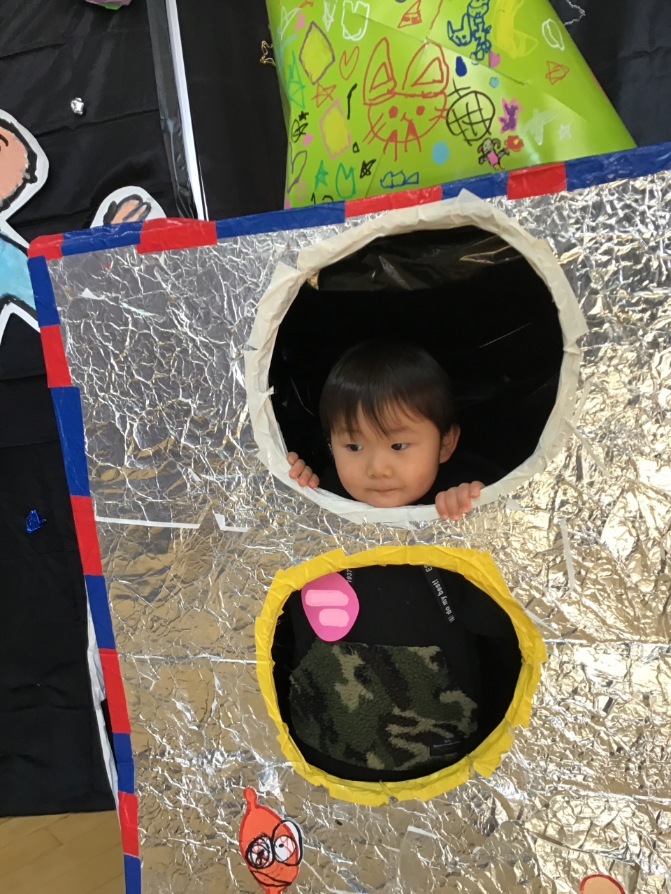 年長児が作品展で作ったトンネルや車で遊びました(^O^)/