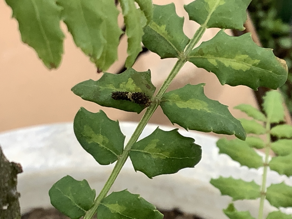 幼稚園のさんしょうの木にアゲハチョウが卵をうみましたよ!!