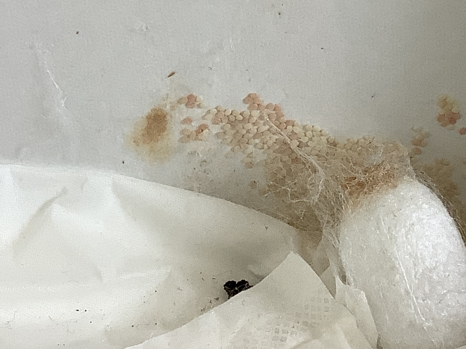 卵に黒い点々模様が見えます