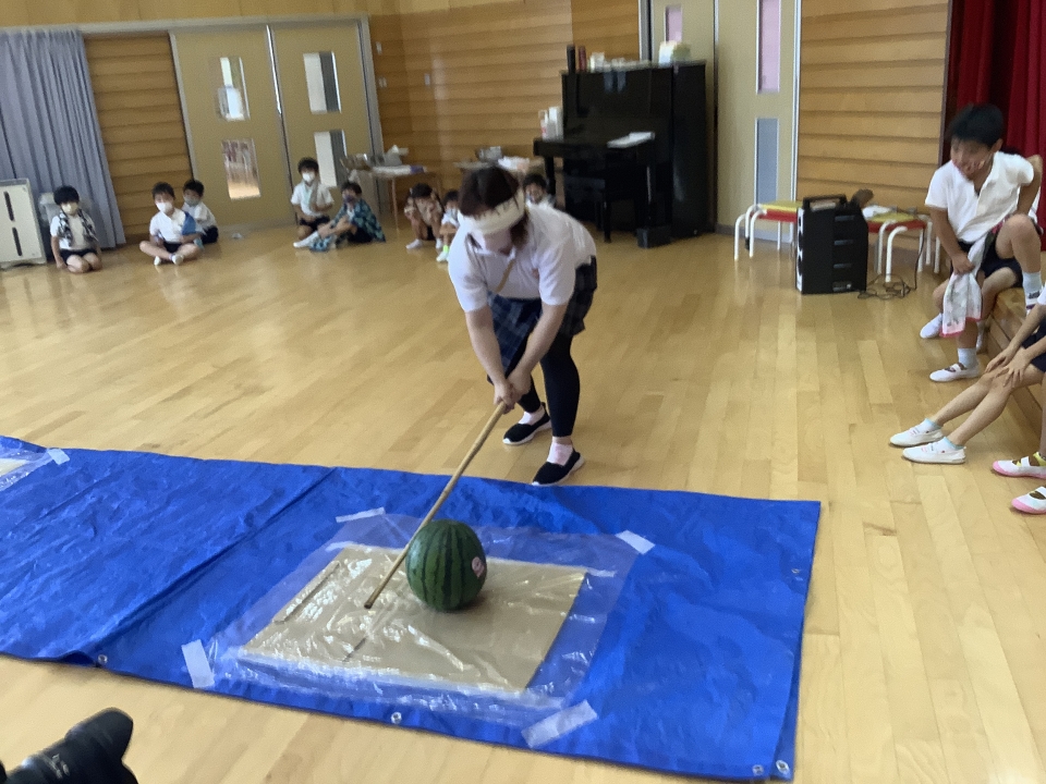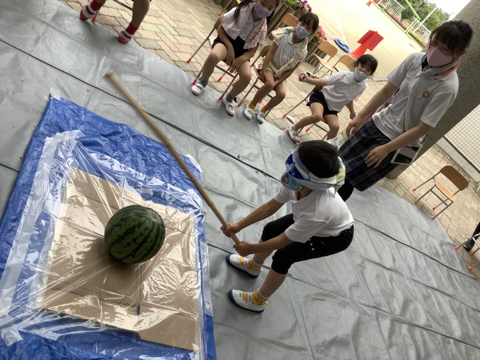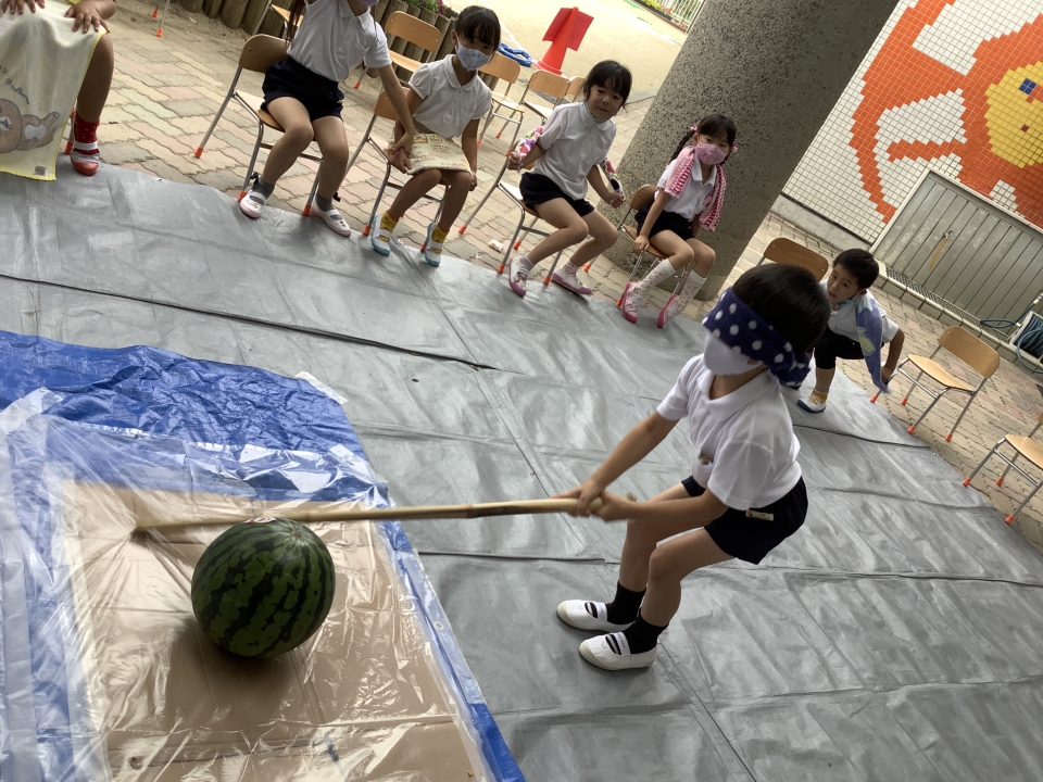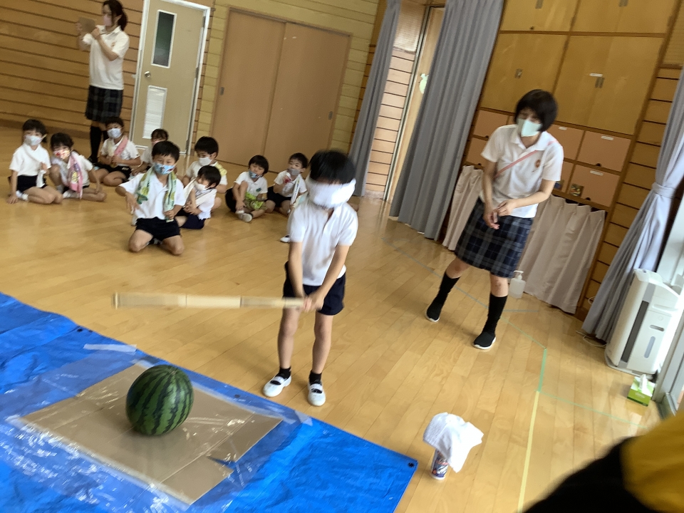 みんなが「みぎ!ひだり!」と応援するのですが、なかなか当たらず・・・