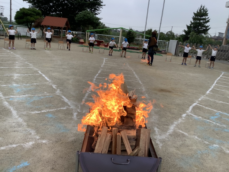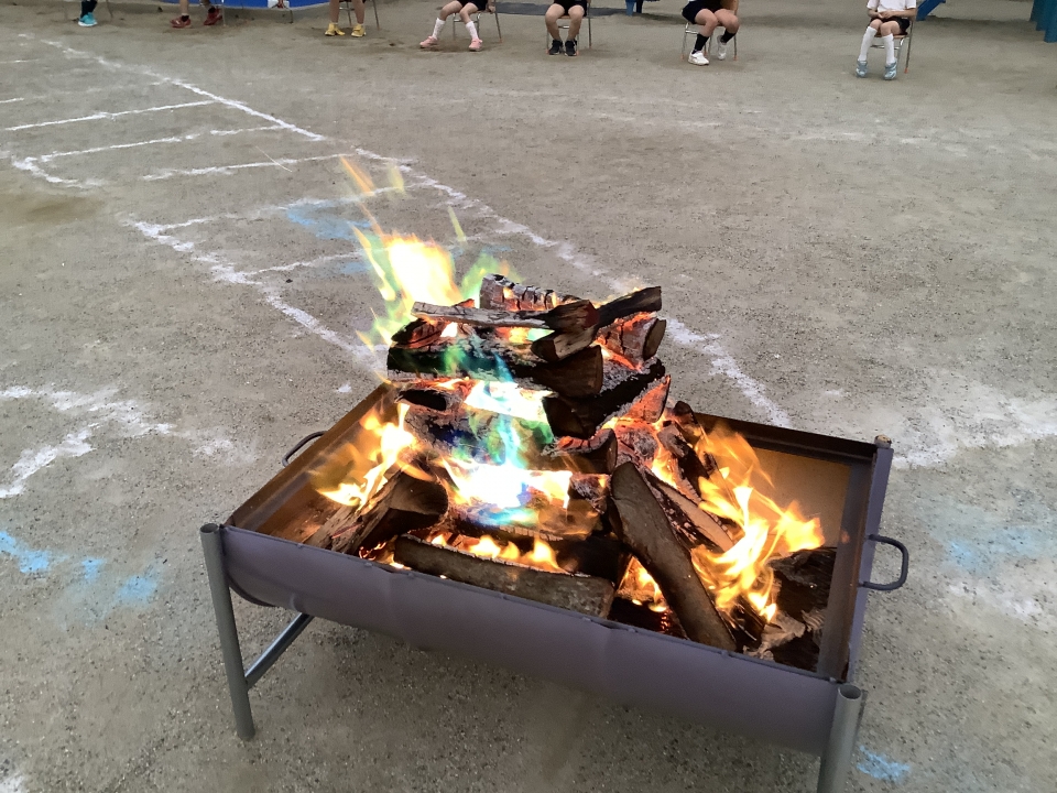 暗くなり、火が燃え上がってきたところで、園長先生が魔法をかけました!!