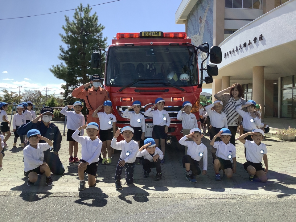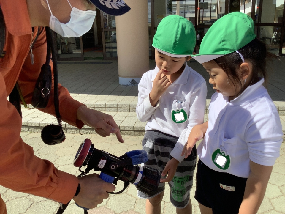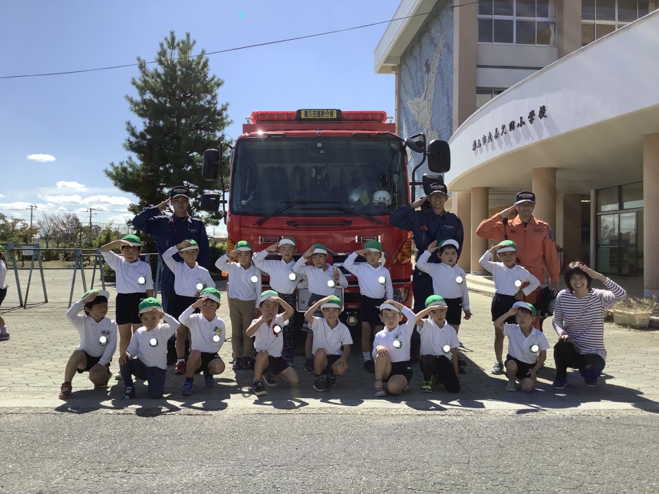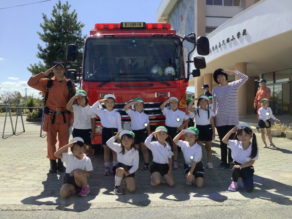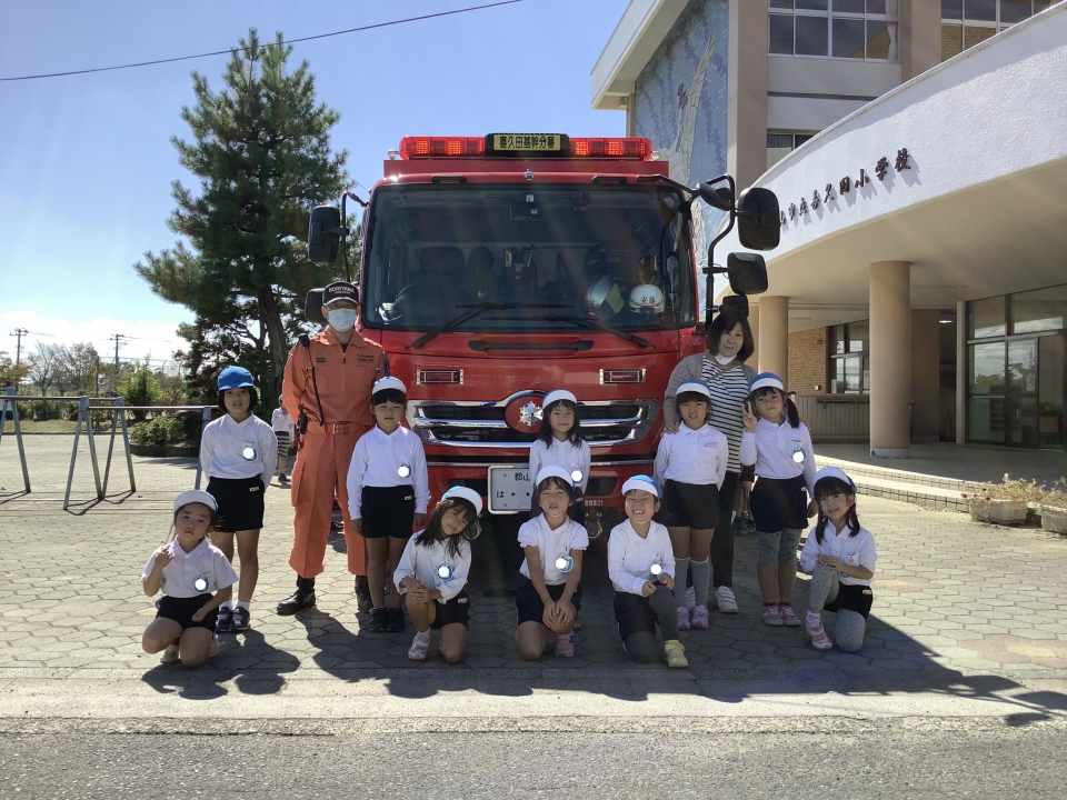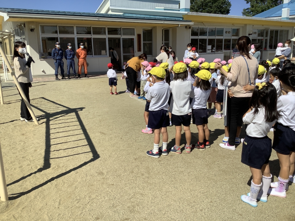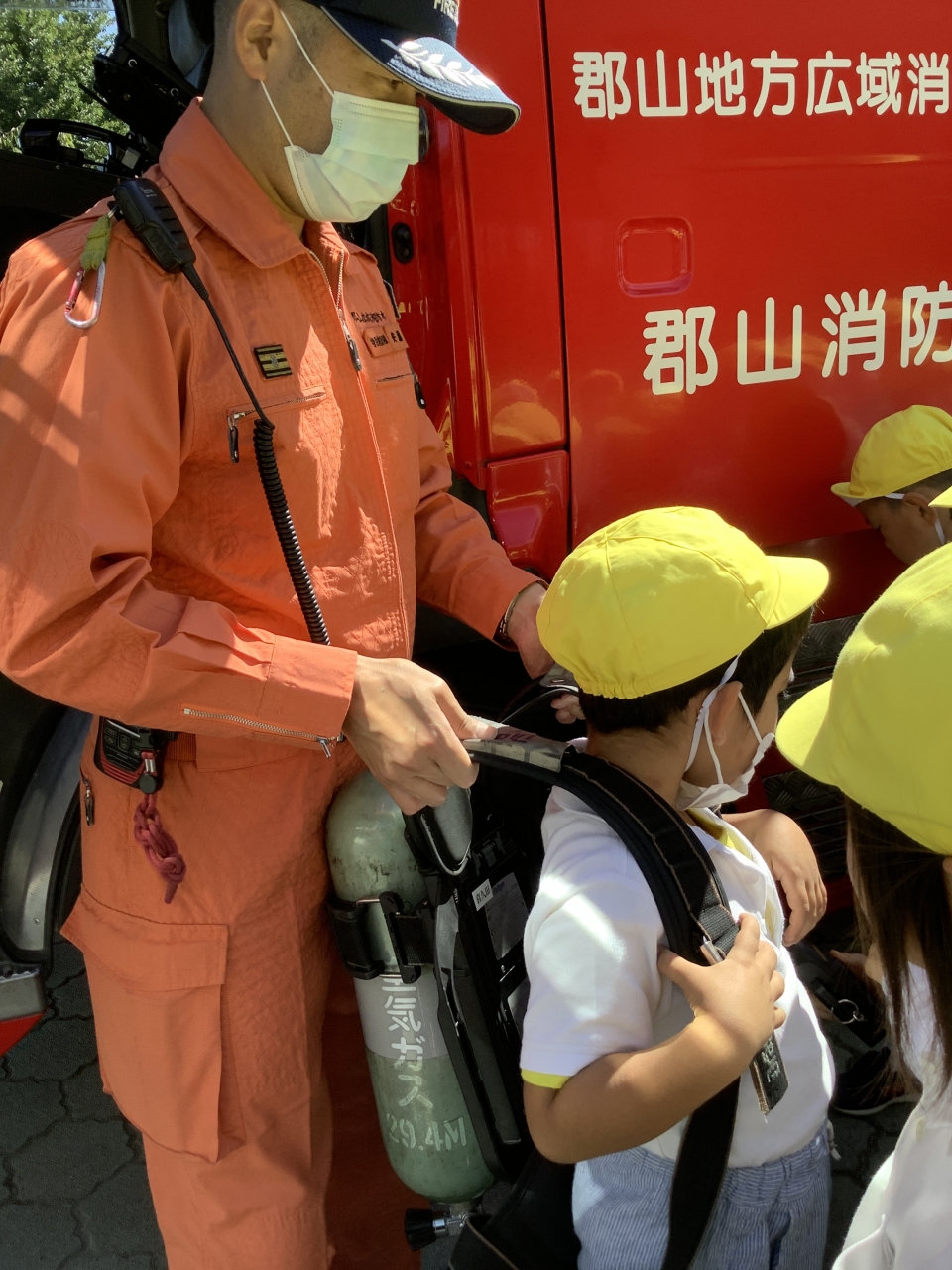 年長児は、消防士さんと消防車と一緒に記念撮影☆彡