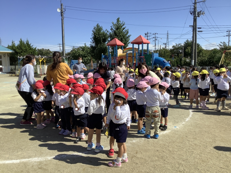 年少児もきちんとハンカチを口にあて、避難できましたよ。
