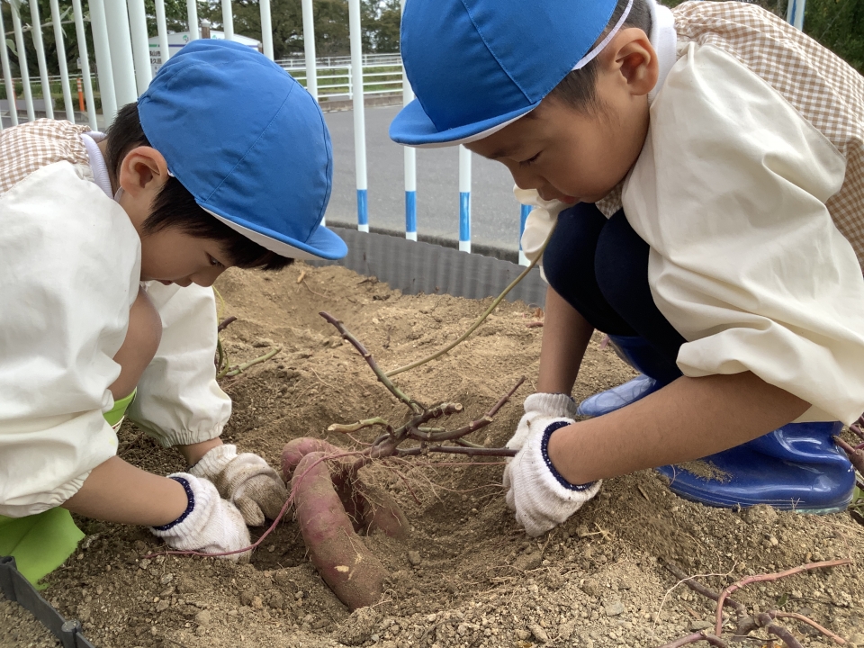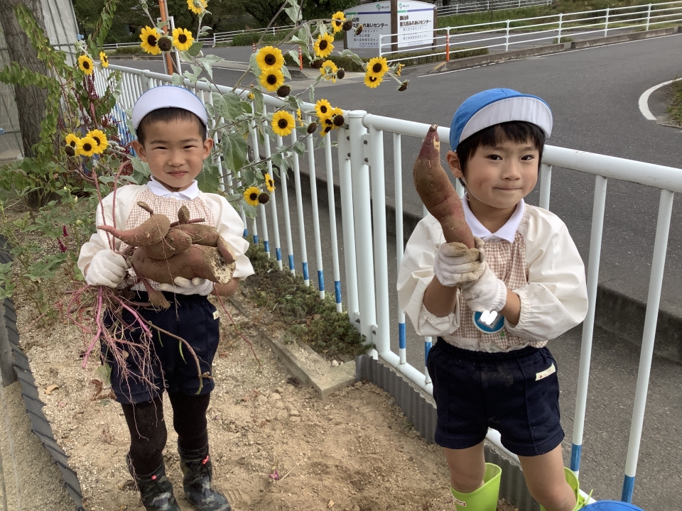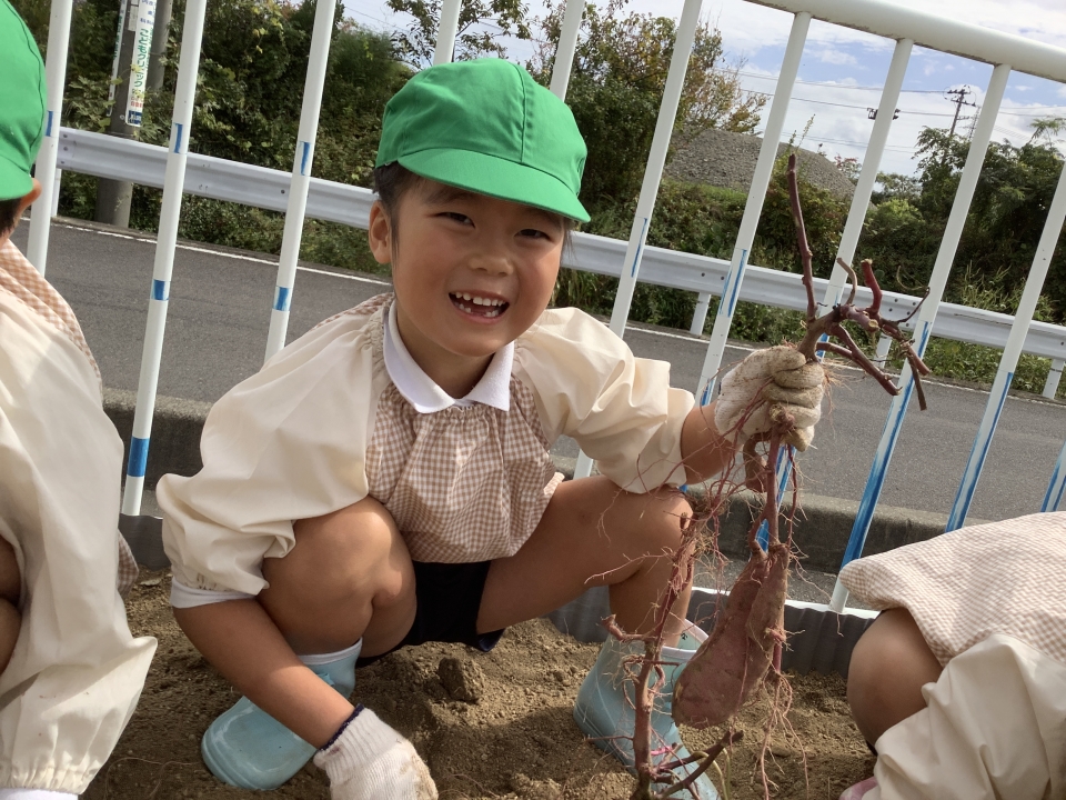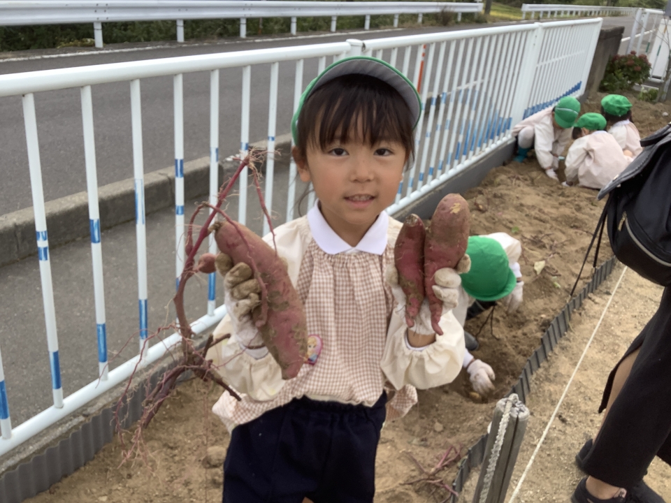 掘ったさつまいもは、幼稚園で焼きいもや大学いも、さつま汁を作って、食べたいと思います(^_-)-☆
