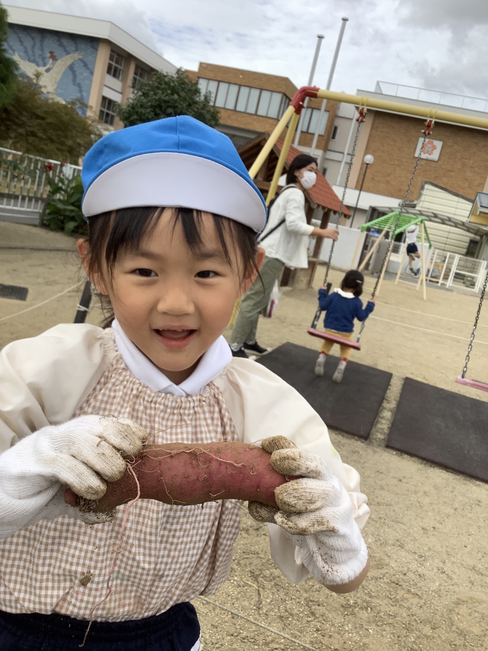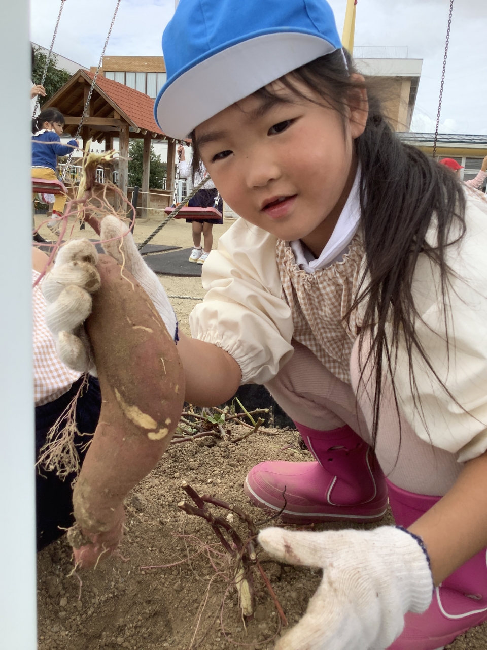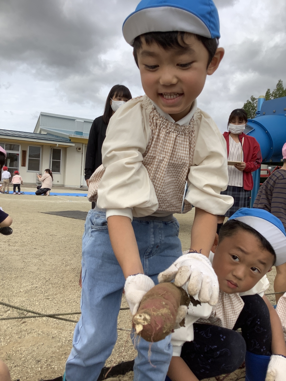 掘ったさつまいもは、幼稚園で焼きいもや大学いも、さつま汁を作って、食べたいと思います(^_-)-☆