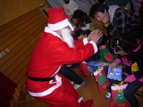サンタさんのひげを触ったり、「ありがとう」とお礼を言ったりして、みんな大喜びしていました。