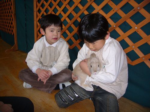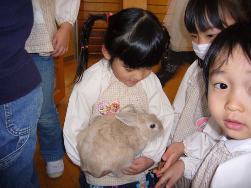 初めは、抱っこするにもおっかなびっくりだったお子さんたちも、今ではすっかり仲良しになりました。