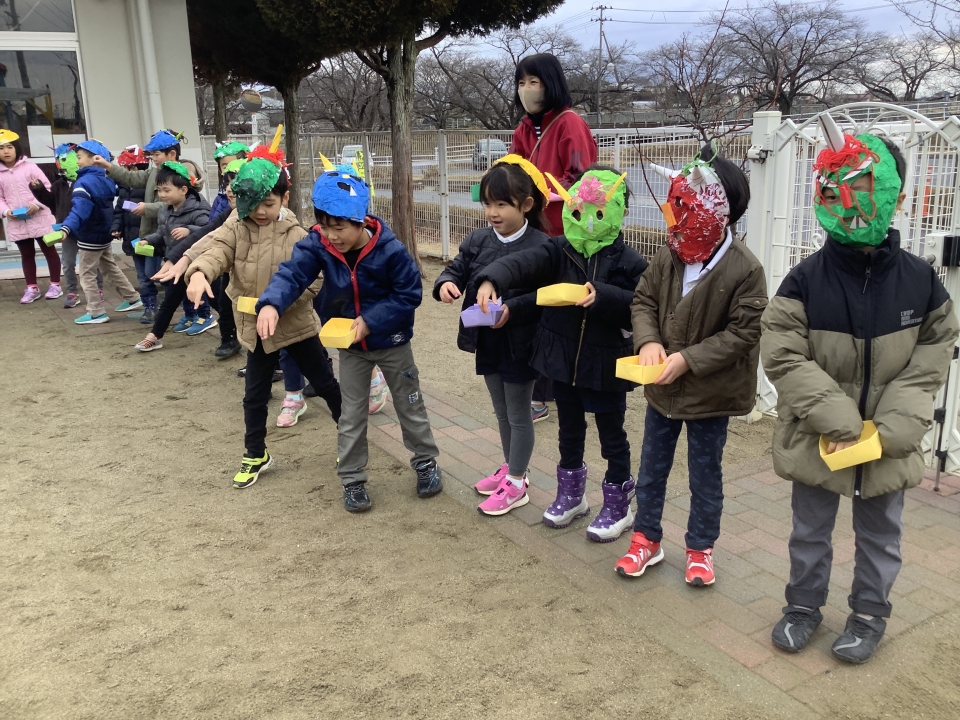 コロナウィルス問題で声は出せませんでしたが、元気に鬼退治をしましたよ(^○^)