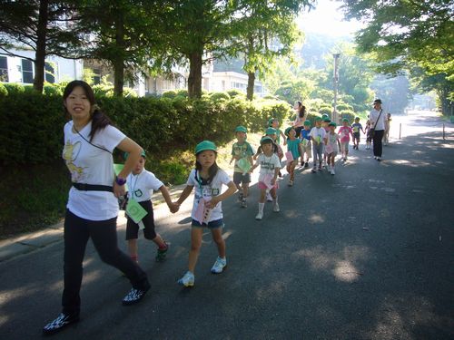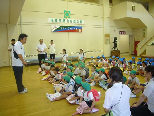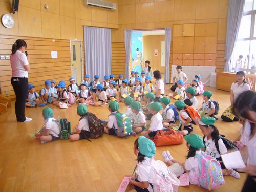 待ちに待った、お泊り保育です。出発前に先生から、お泊り保育のお約束を聞きました。