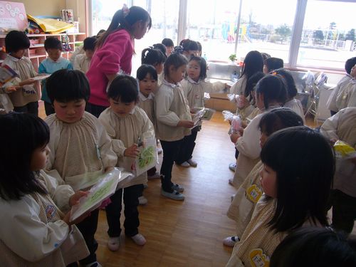 つき組とほし組が卒園する年長さんにお礼の言葉を言いました。