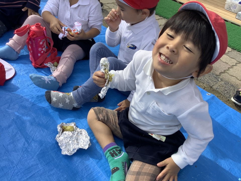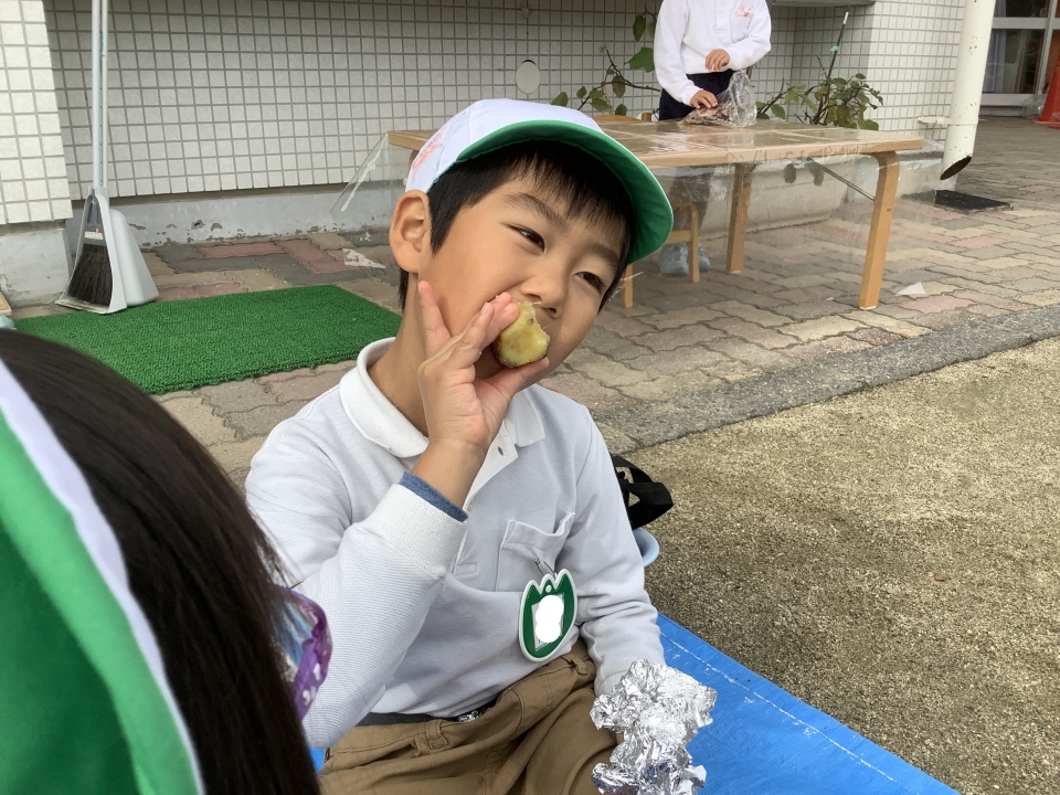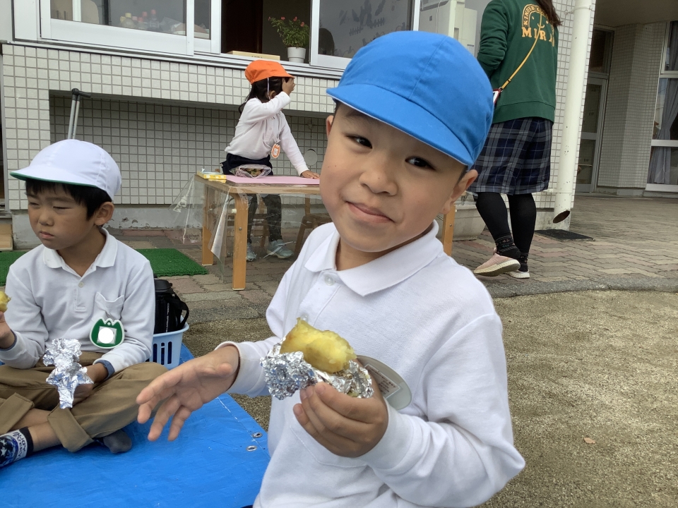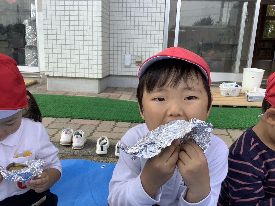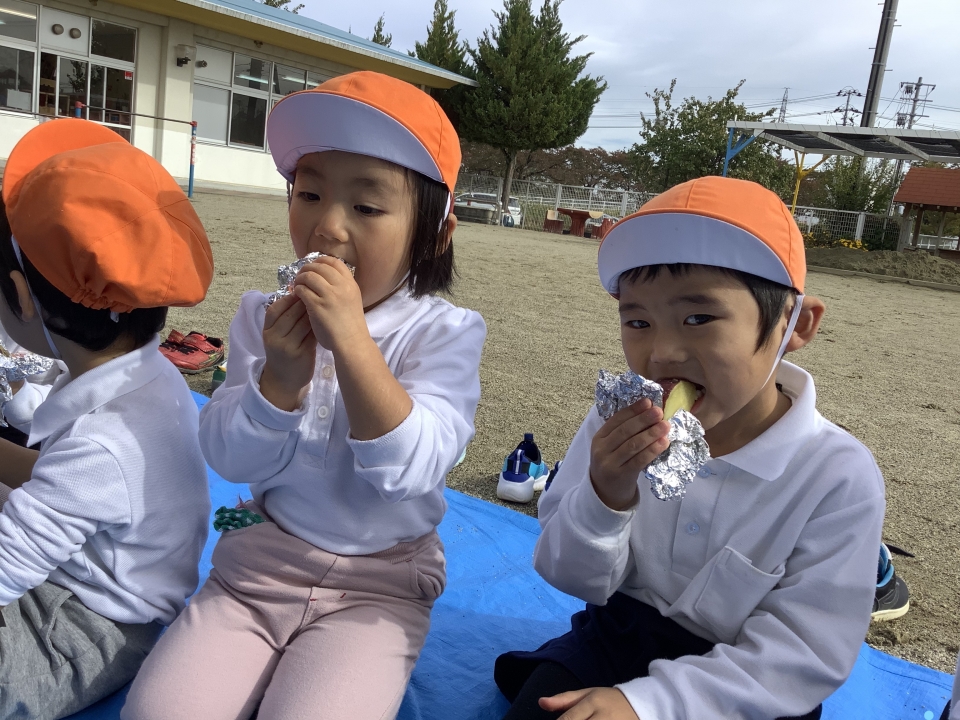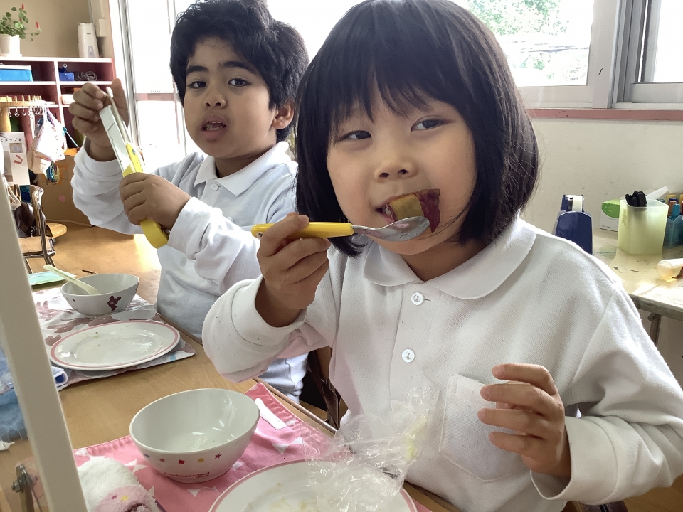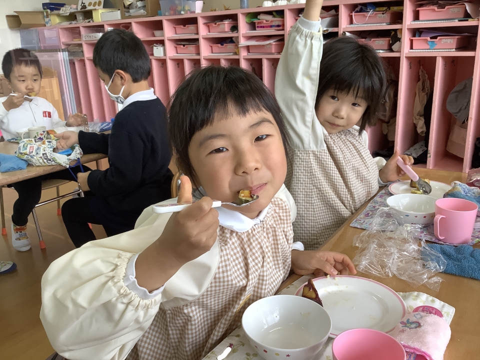 「美味しそう!」「焼きいも食べたい!」と食べることを楽しみにしておりましたので、幼稚園で早速調理していただきました。