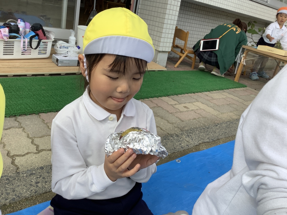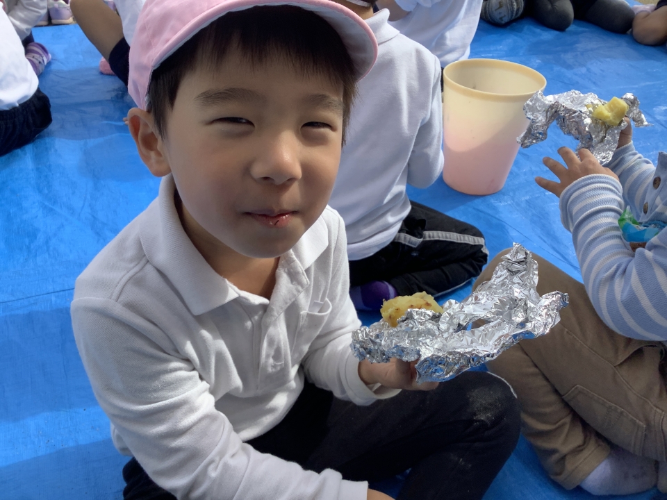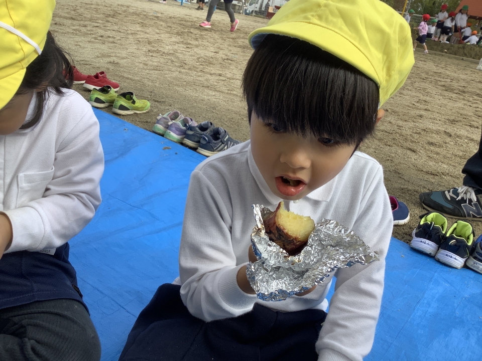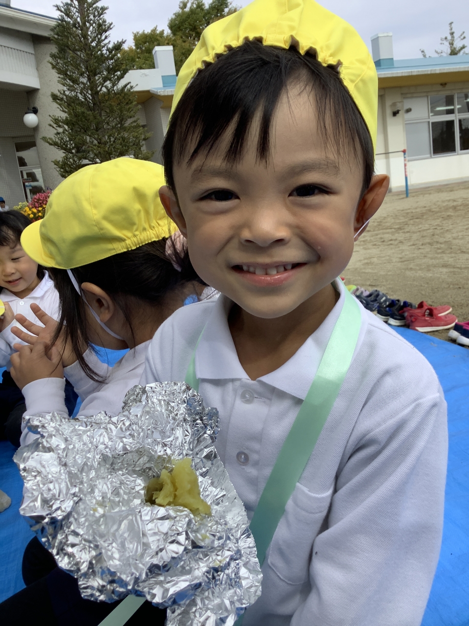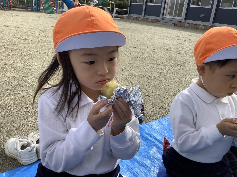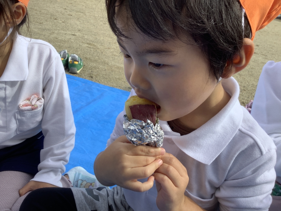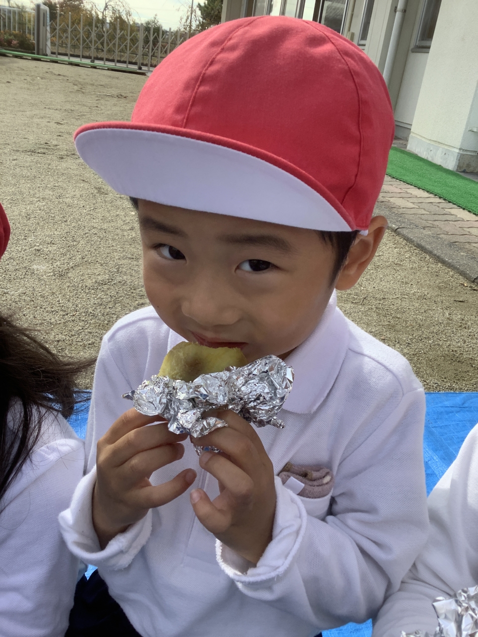 「美味しそう!」「焼きいも食べたい!」と食べることを楽しみにしておりましたので、幼稚園で早速調理していただきました。