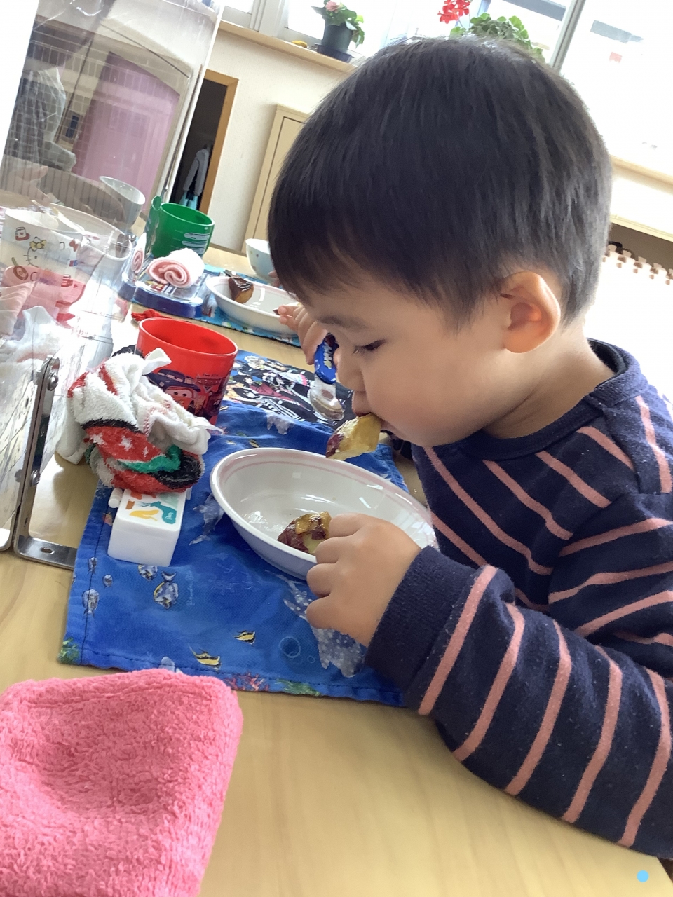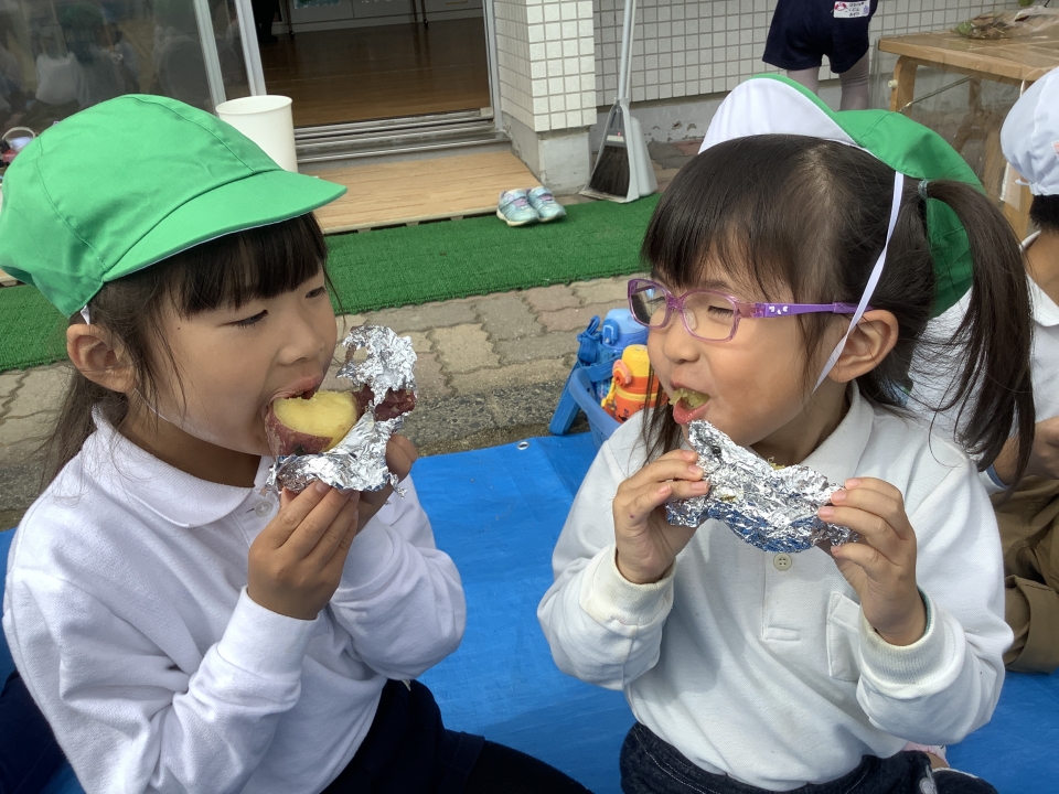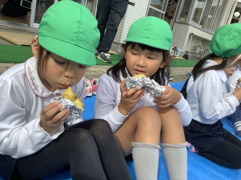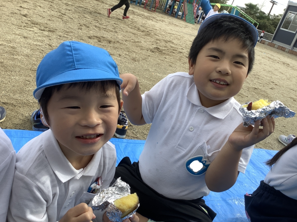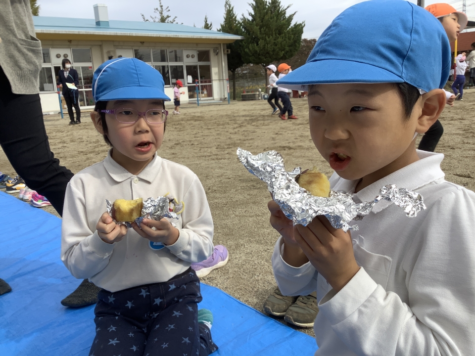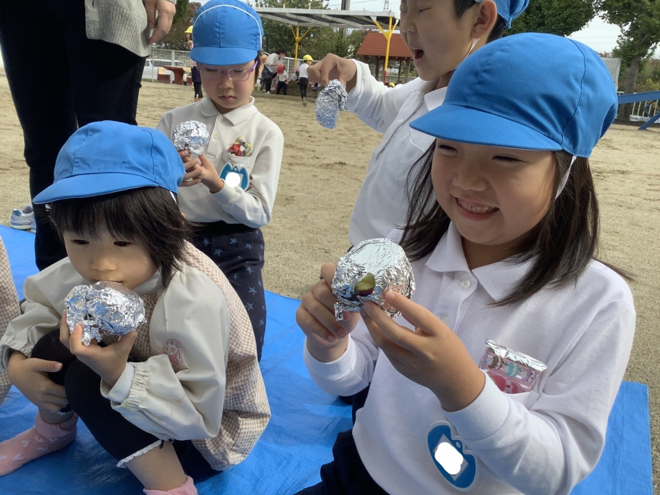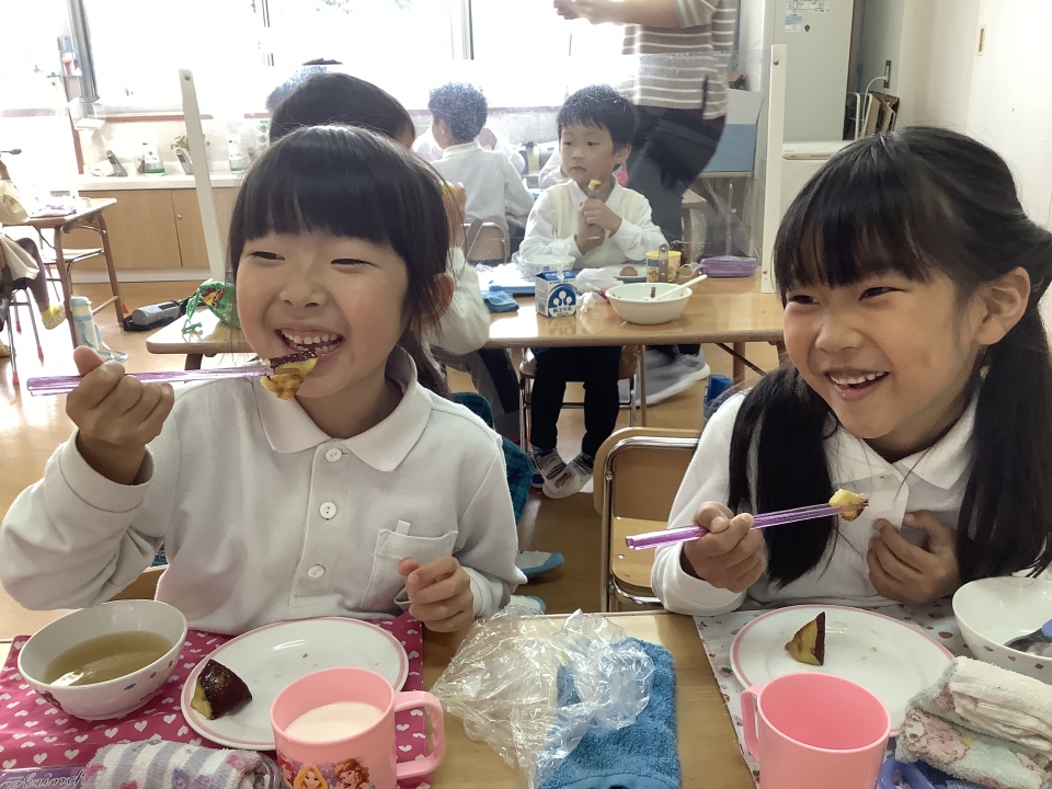 「美味しそう!」「焼きいも食べたい!」と食べることを楽しみにしておりましたので、幼稚園で早速調理していただきました。