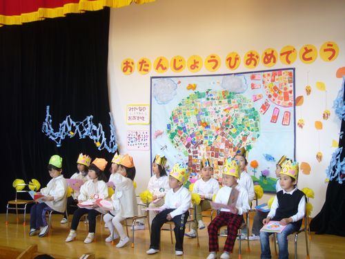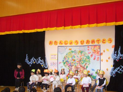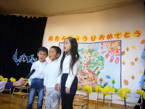 11月16日は11月生まれのお誕生会でした。はじめの言葉はうみぐみのかいとくん、かずまくんとあきちゃんです。