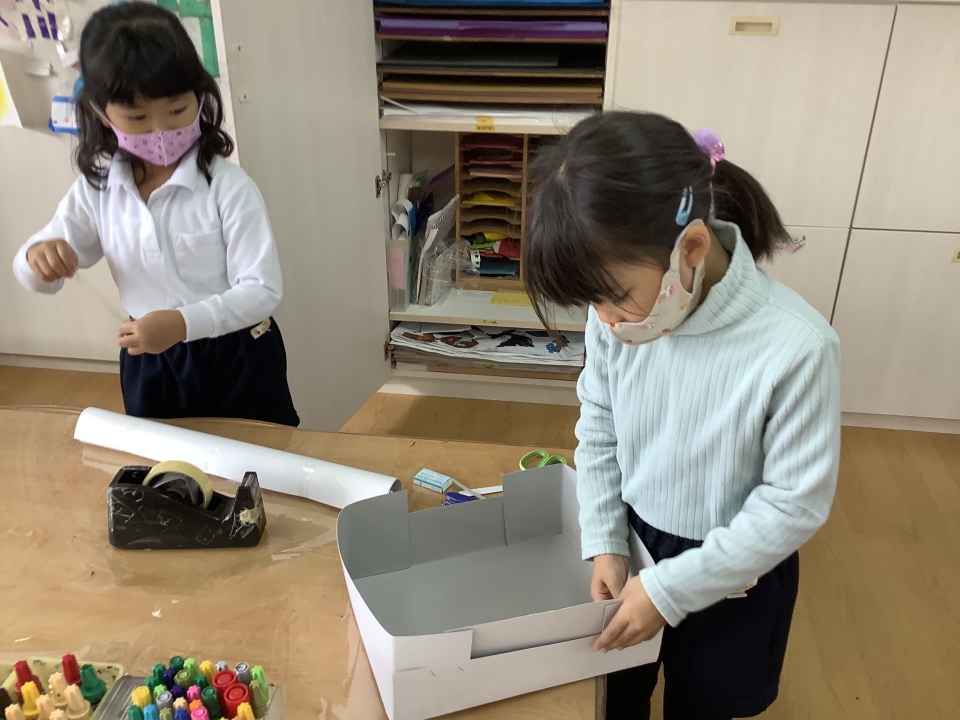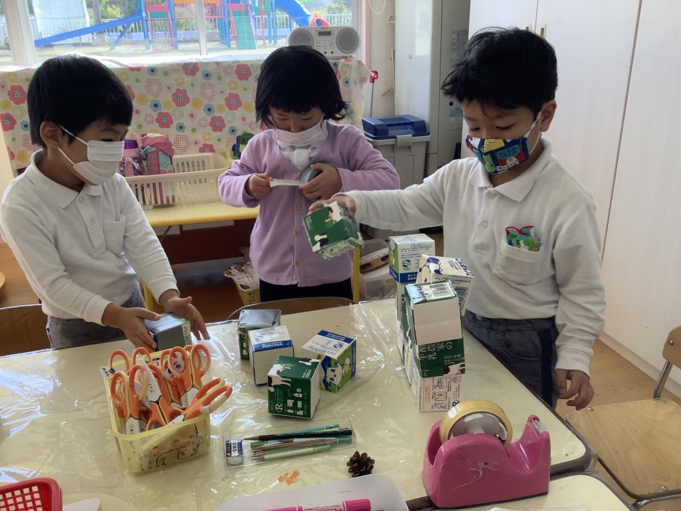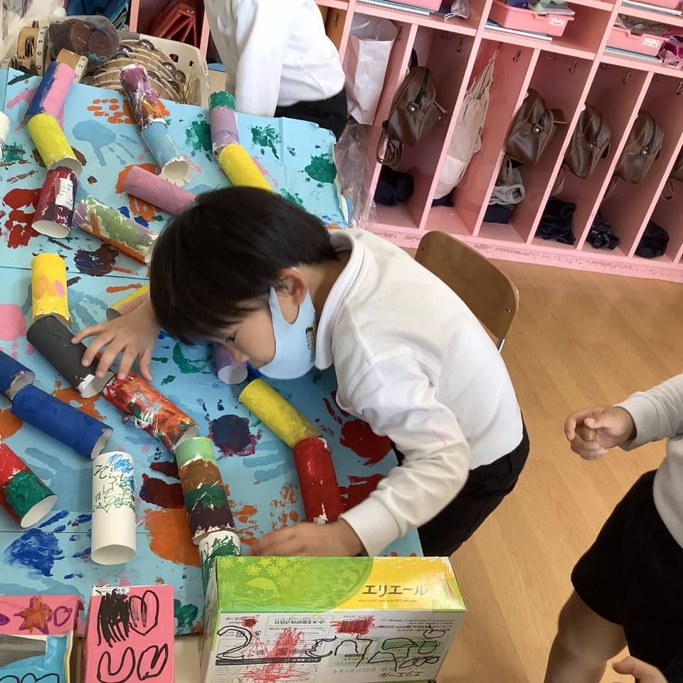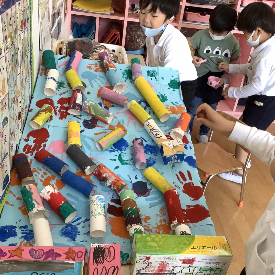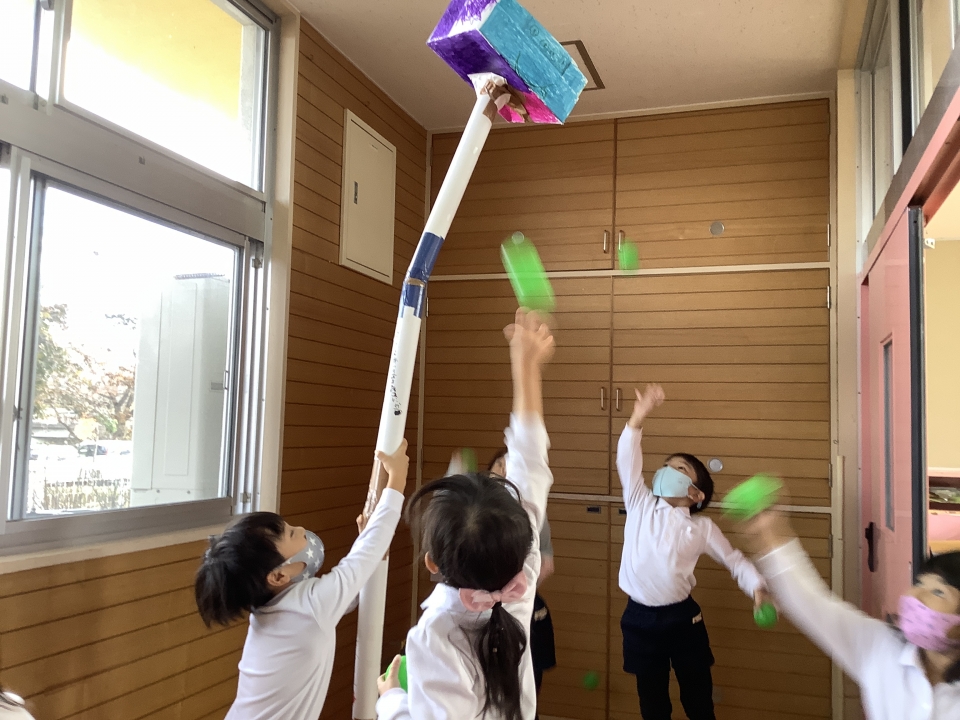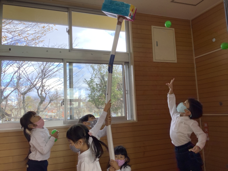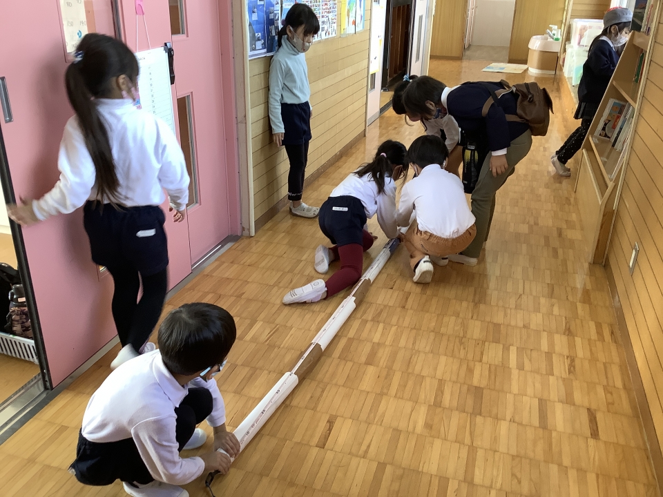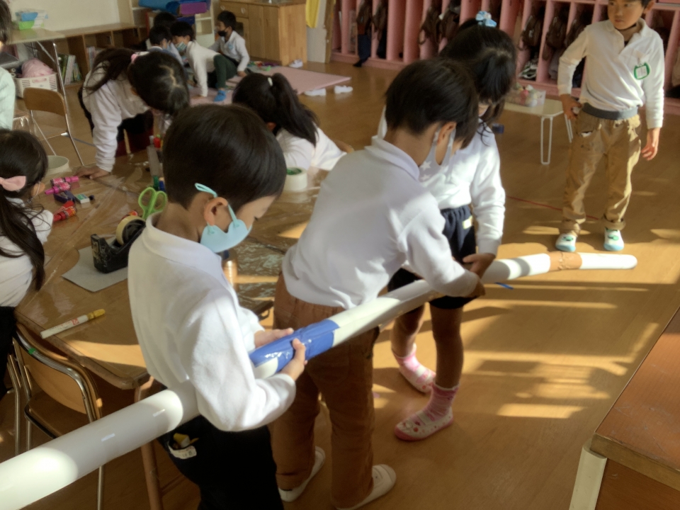 どうしたら長くなるのかな?みんなで考えて協力して作っていきます。