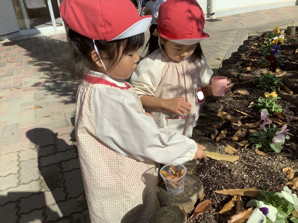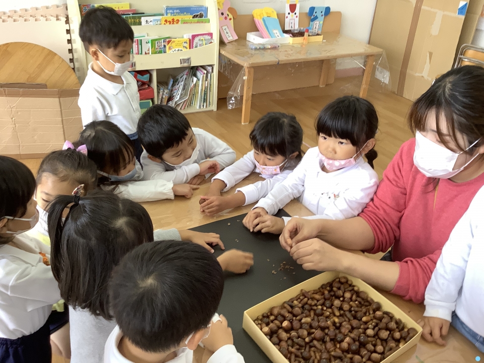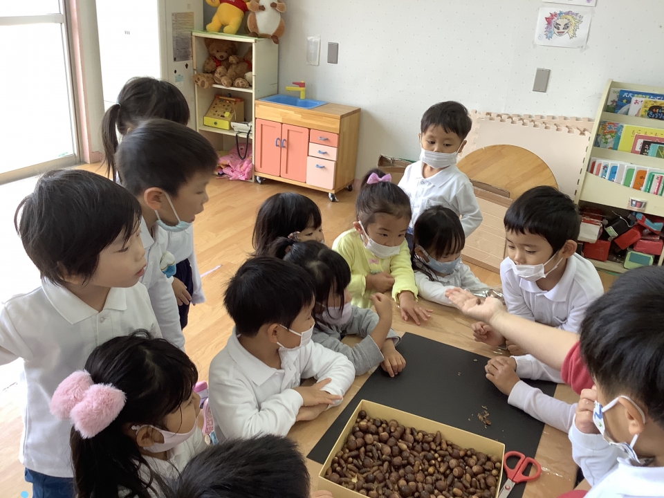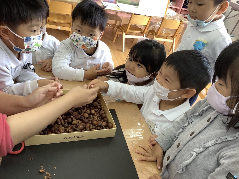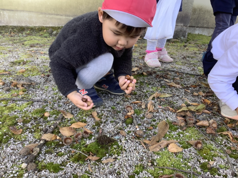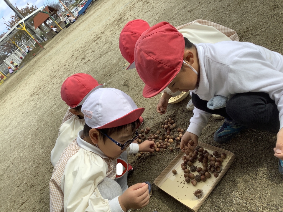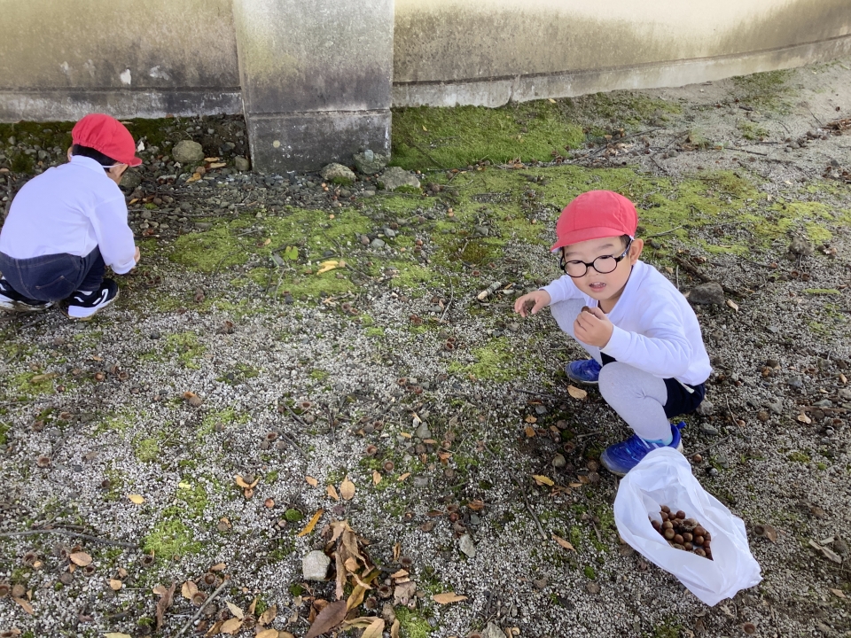園舎裏にどんぐりの木があります。みんなでたくさん拾いました(^○^)