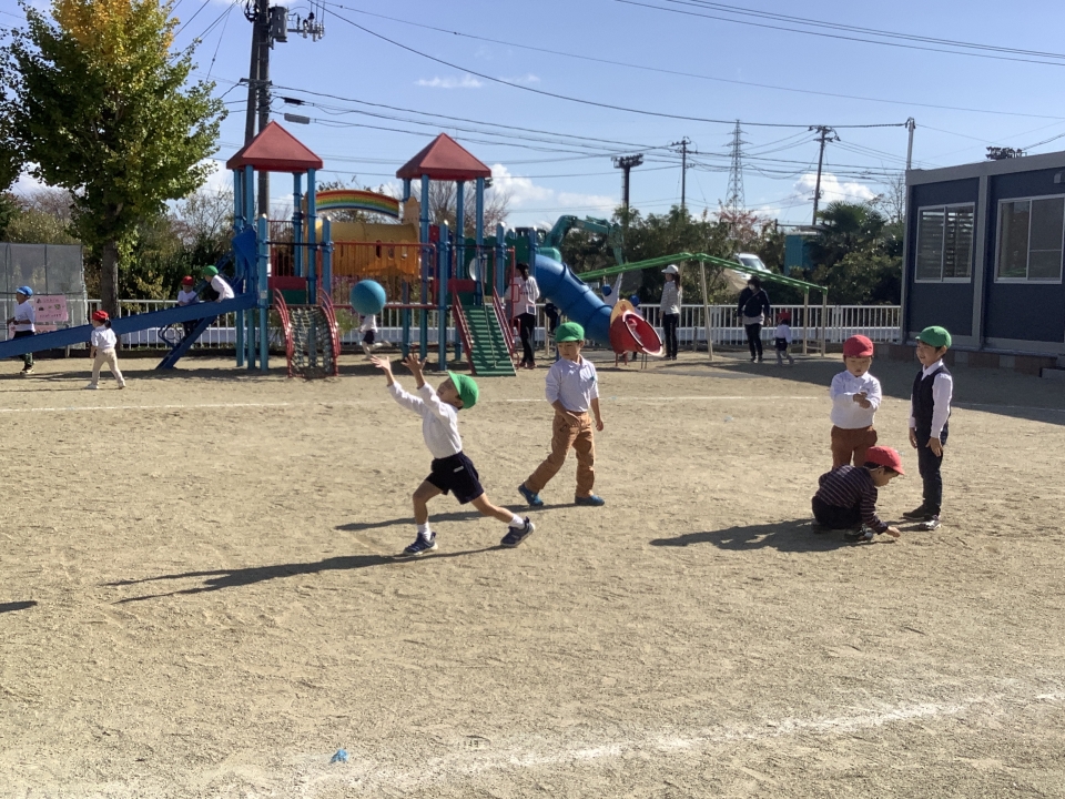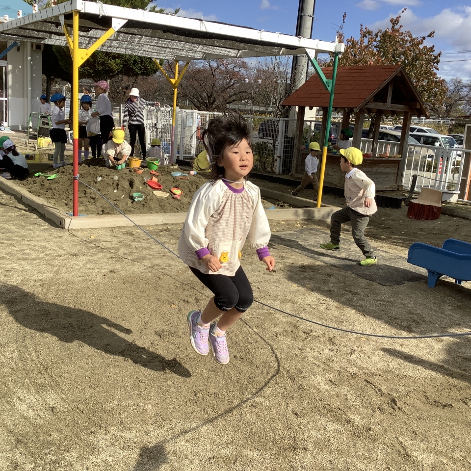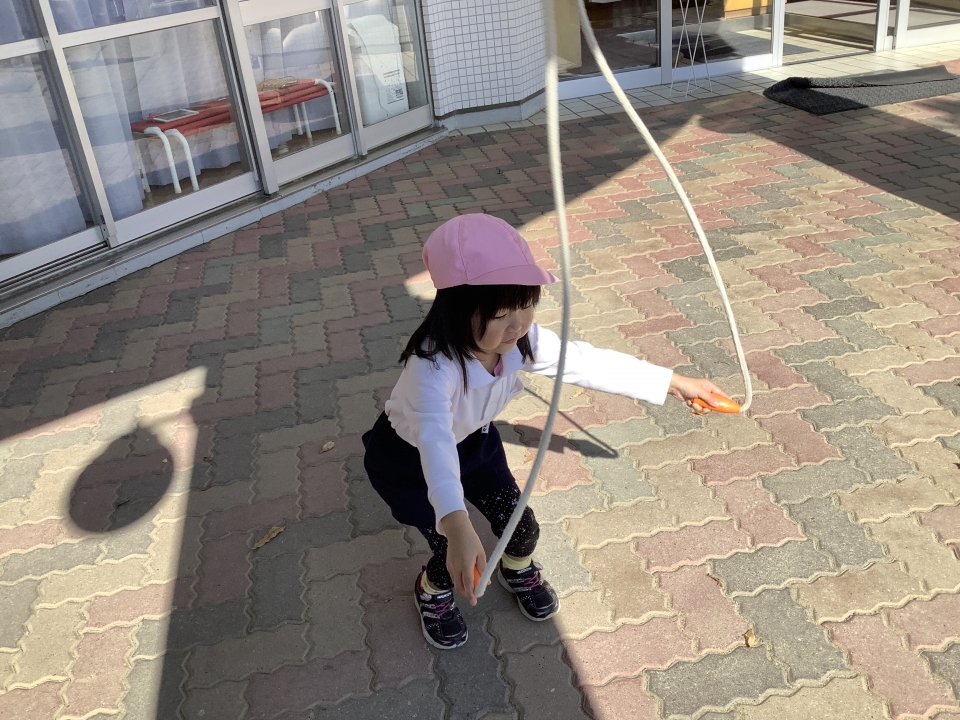 ボール、縄跳び、鉄棒などで体をいっぱい動かしていますよ(^○^)