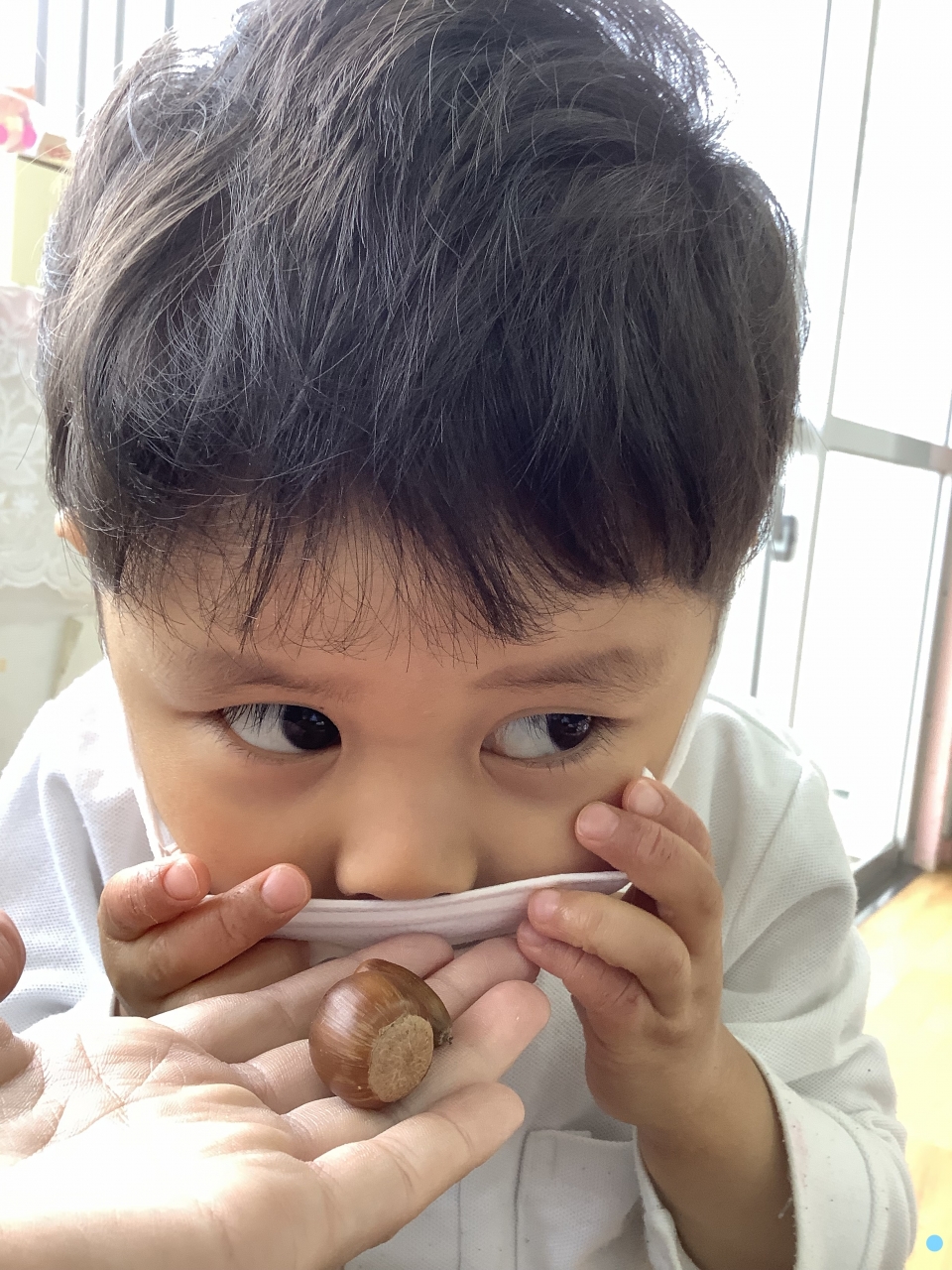 どんぐりの中身はどうなっているのかな?どんなにおいがするのかな?