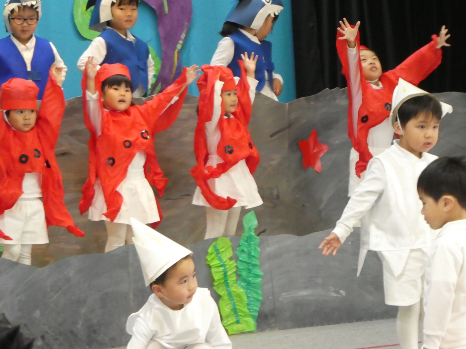 タイ、クラゲ、イカ、タコ、サメの役になって踊りました♪