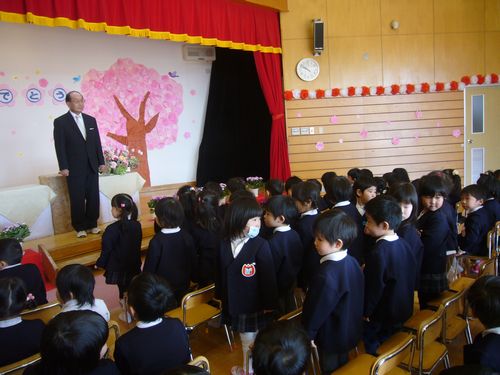 3月16日は修了式でした。年長さんがいないのでみんなやや緊張気味でしたが、園長先生が新年度のお話をされると少しずつ自覚も芽生えてきたようです。