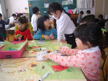 在園児の友達と一緒に遊びながら、幼稚園生活を体験しました。